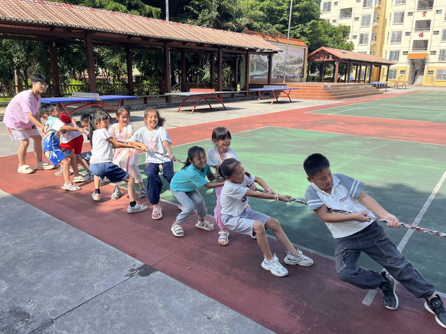7月15日上午,数学与统计学院“澎湃·朋π”实践服务队在南宁市武鸣区马头镇中心学校开展以“燃青春之火,聚青春之力”为主题的游园运动会。
