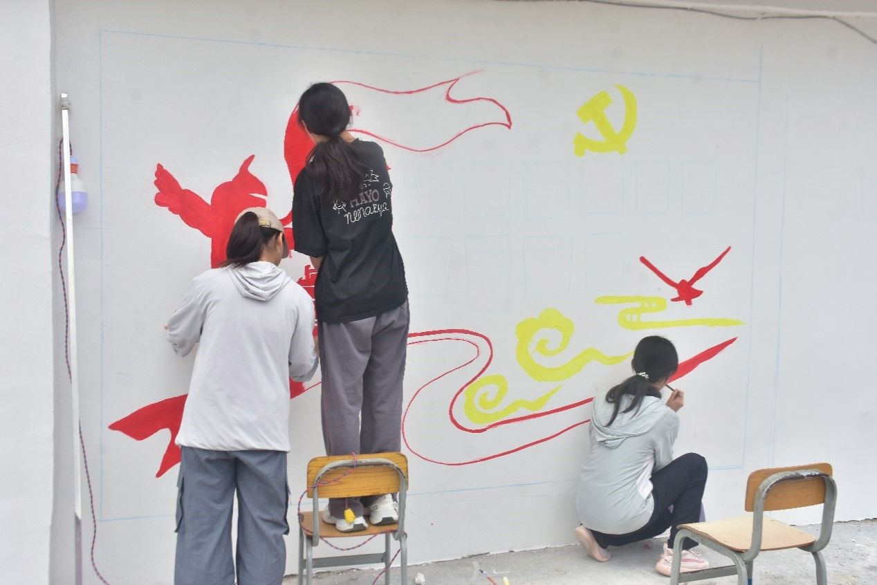 活动期间,团队志愿者们还和小朋友一起进行了墙绘和清扫校园活动,鼓励孩子们充分地发挥丰富的想象力和创造力,也为校园美化贡献自己的力量。