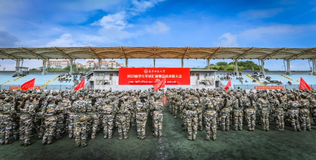 最后,伴随着《中国人民解放军军歌》的音乐声,2023级学生军训汇演暨表彰总结大会落下帷幕。