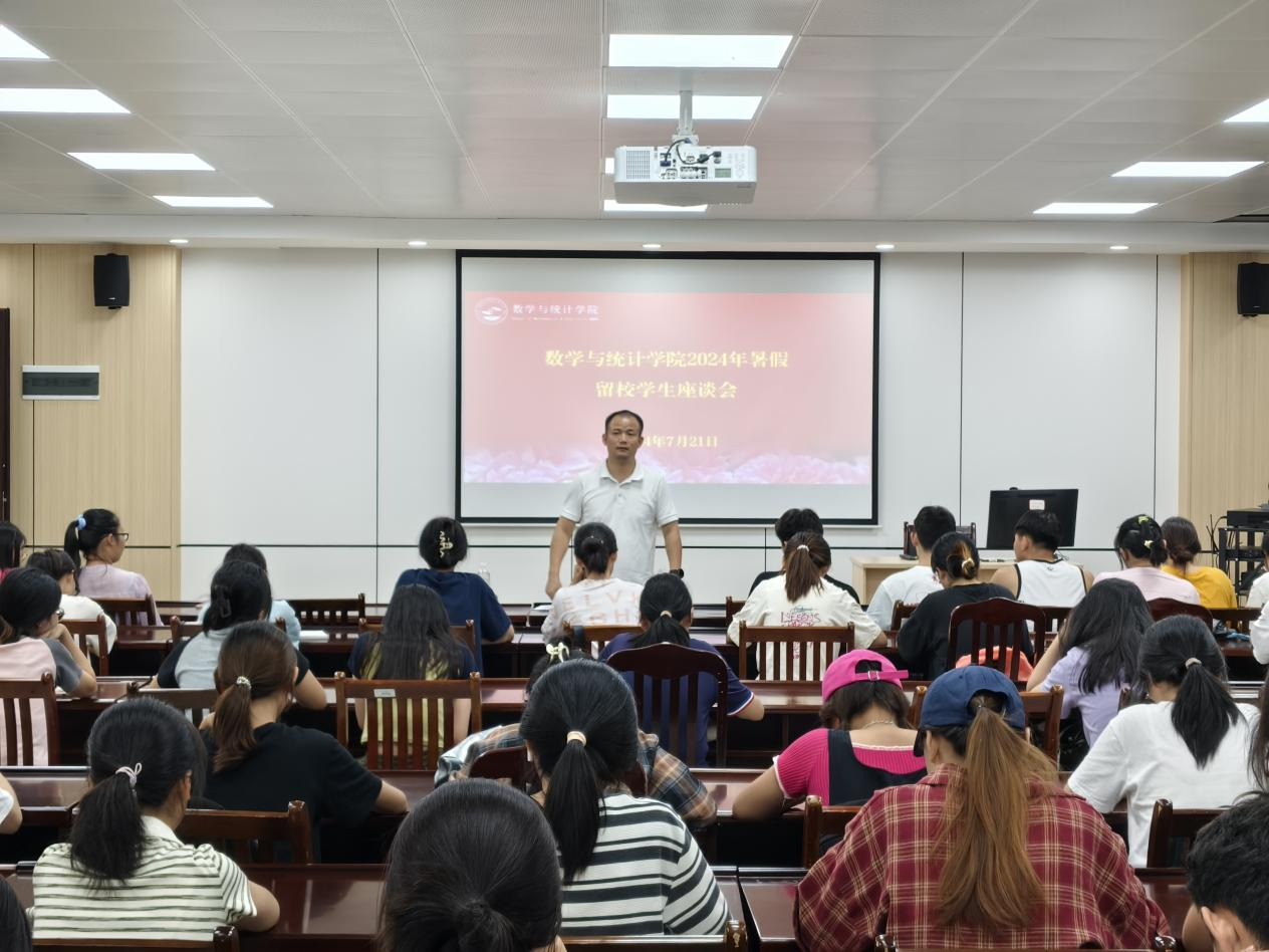 为进一步落实学校关于暑假留校学生的工作要求,增强暑假留校学生的安全意识,切实保障留校学生生活学习有序进行,7月21日,数学与统计学院召开暑假留校学生座谈会,数学与统计学院党委付进副书记、辅导员何振飞老师和留校学生共计70余人参加了本次会议。