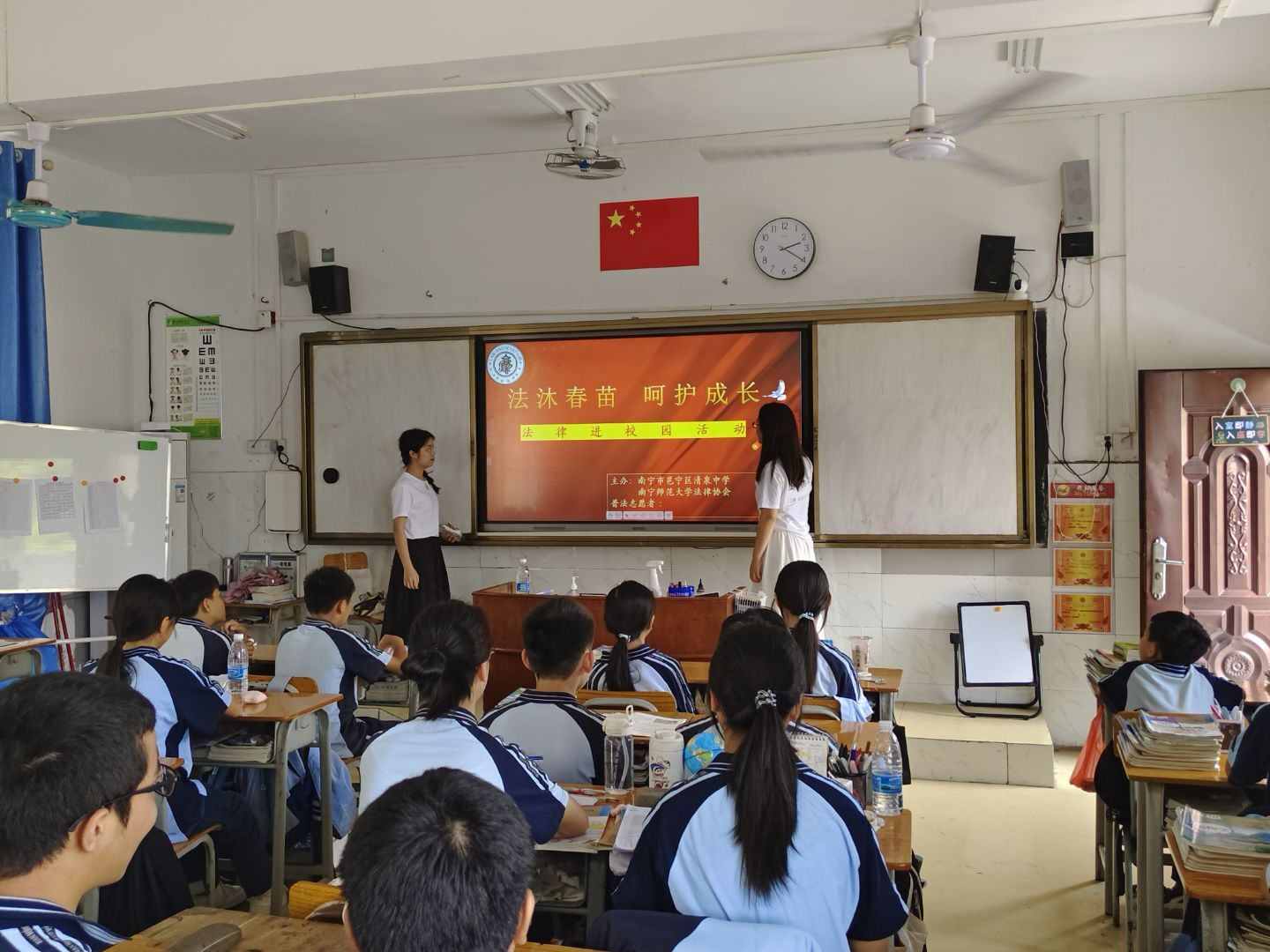 为了让青少年进一步了解未成年人犯罪的危害性和严重性,帮助青少年提高法律素养和法治意识,推动法治宣传教育,2024年5月14日下午,我校法律协会赴南宁市邕宁区清泉中学开展第九期清泉中学普法活动。此次活动由南宁师范大学法学与社会学院法律系专任教师兼律师秦晓辉老师、杨剑锋老师随队指导,活动还邀请到邕宁区人民法院粟少清法官到场指导。本次活动由我校法律协会会长刘英作为活动负责人,南宁师范大学法律协会成员以及南宁市邕宁区清泉中学全体学生共同参与了本次活动。