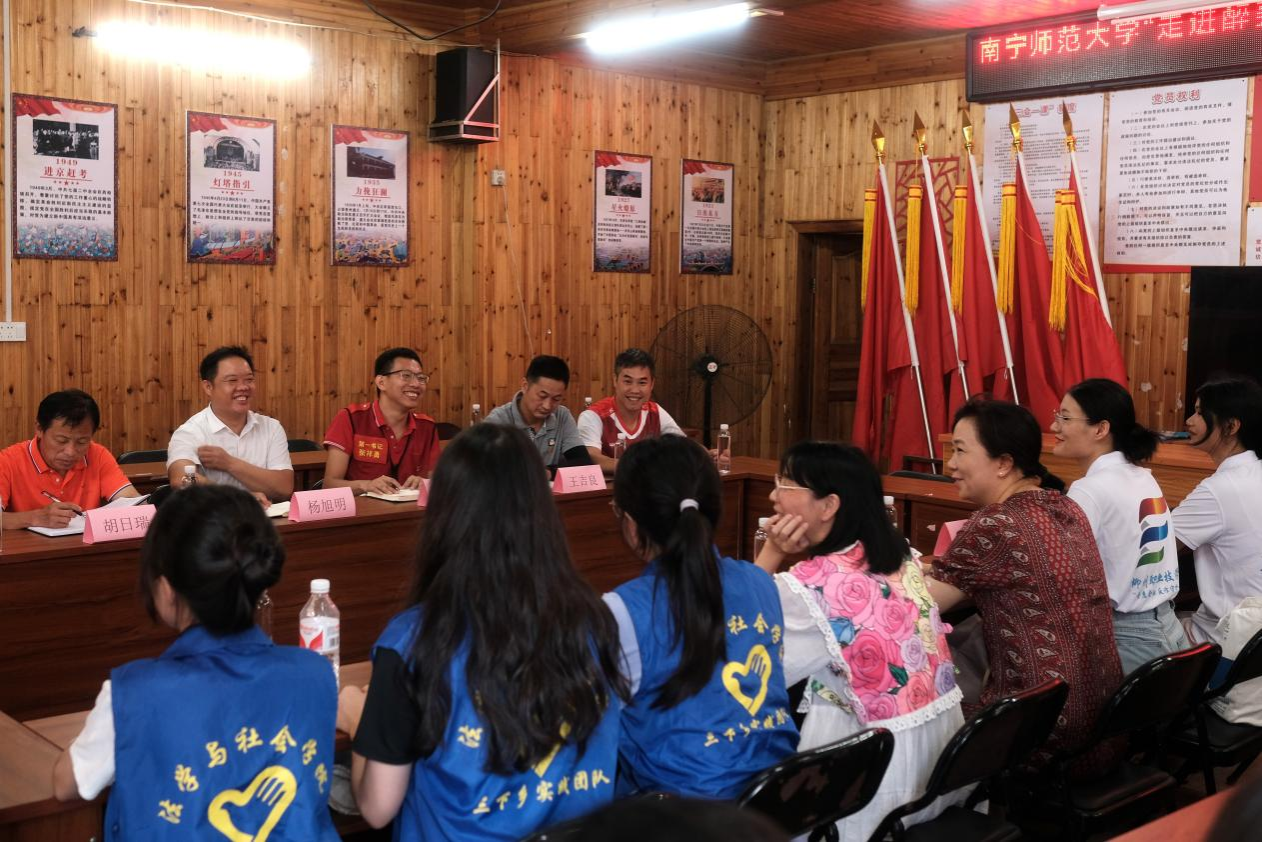 为深入贯彻党的二十大精神,加强民族团结进步创建工作,共同探索乡村可持续发展的新路径,2024年7月17日上午,南宁师范大学法学与社会学院“三下乡”社会实践团队在柳州市三江侗族自治县独峒镇平流村党群服务中心会议室,成功举办了以“共绘乡村新蓝图,携手铸牢民族团结”为主题的座谈会。南宁师范大学法学与社会学院党委书记许建、“三下乡”社会实践团全体成员、平流村村两委干部、村小学教师代表、村民代表参加了本次座谈会。会议由平流村驻村第一书记张祥勇主持。