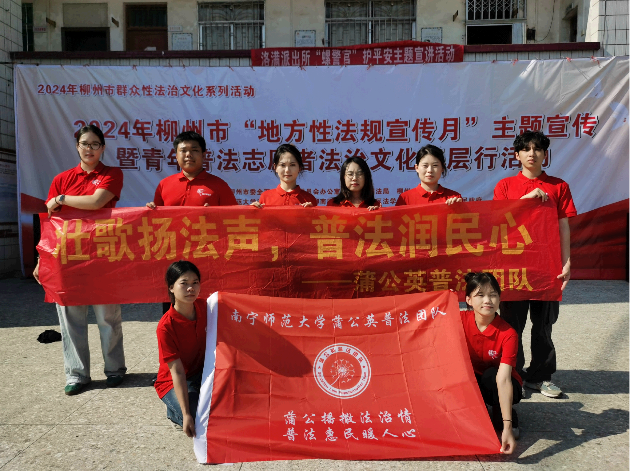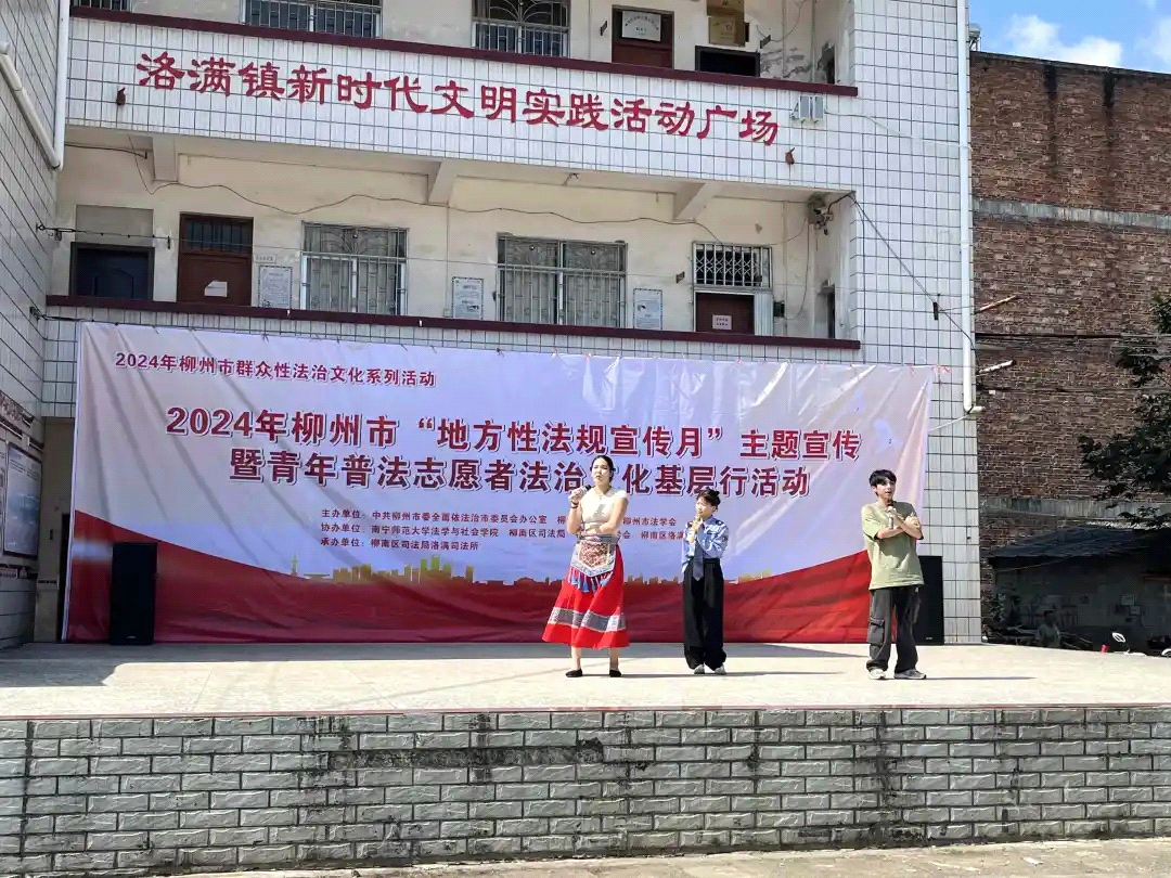 为深入学习贯彻党的二十大、二十届三中全会精神,学习贯彻习近平新时代中国特色社会主义思想和习近平法治思想,法学与社会学院蒲公英普法团队于2024年8月27日参加柳州市“地方性法规宣传月”暨青年普法志愿者法治文化基层行活动。本活动旨在加大对宪法法律、地方性法规和政府规章等知识的宣传,使法治观念更加深入人心,切实推进乡村法治建设、平安建设。