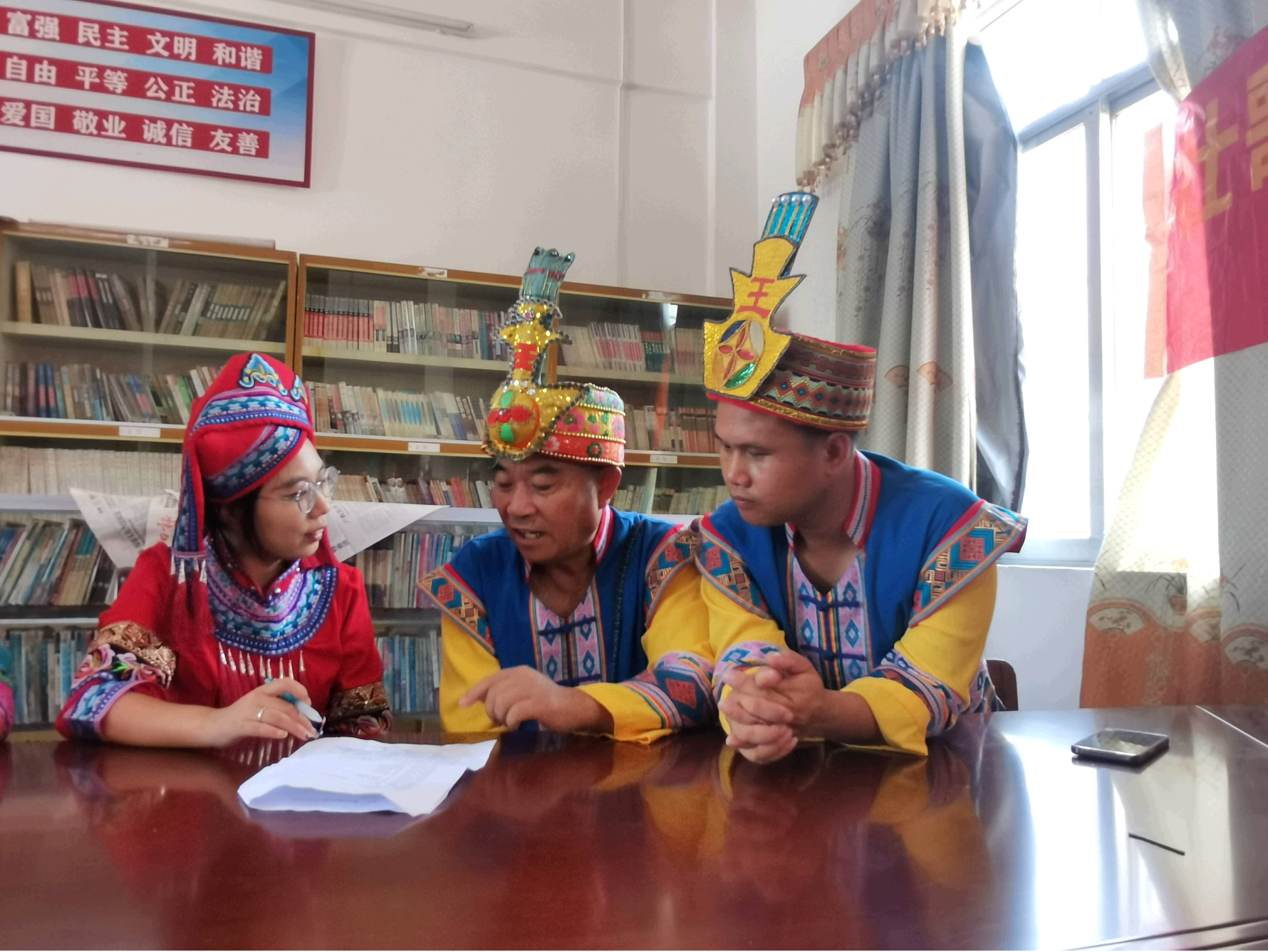 在活动的过程中,蒲公英普法团队成员还和地区山歌王们进行了友好的山歌文化交流。成员希望能够通过这种友好交流的方式来深入学习博大精深的山歌文化。交流过程中,山歌王陶业朝与团队成员畅谈了他唱山歌的宝贵经历,分享关于“刘三姐羽化成仙”的故事,团队成员与山歌王们其乐融融,充满了欢声笑语,展现了浓浓的壮族风情和人文魅力,生动诠释了蒲公英普法团队成员和村民朋友之间的深厚情谊。