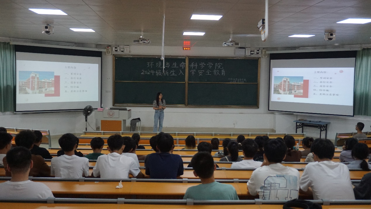 为加强大一新生的安全意识,确保新生们能够迅速适应大学生活,环境与生命科学学院于2024年8月31日下午开展了新生入学安全教育讲座。主讲人为辅导员刘雅楠和韦旖扬老师。