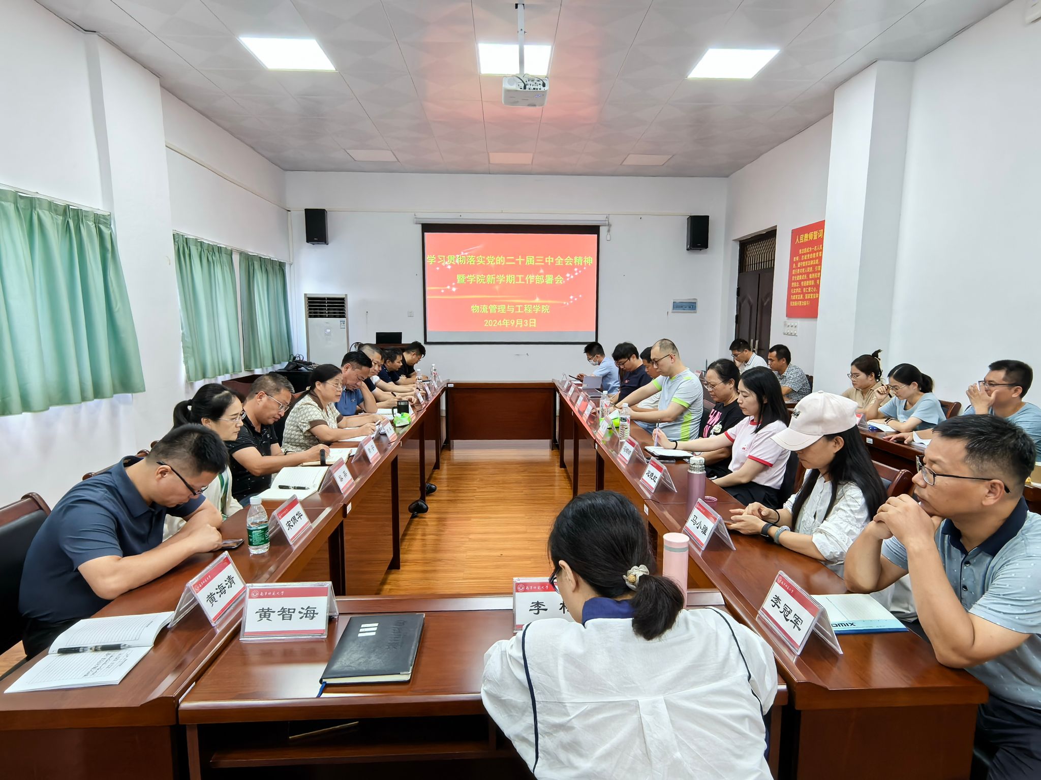 9月3日,物流管理与工程学院在武鸣校区地化楼C414室召开学习贯彻党的二十届三中全会精神暨学院新学期工作部署会,会议由学院院长汪德荣主持,学院全体教职工参加此次会议。
