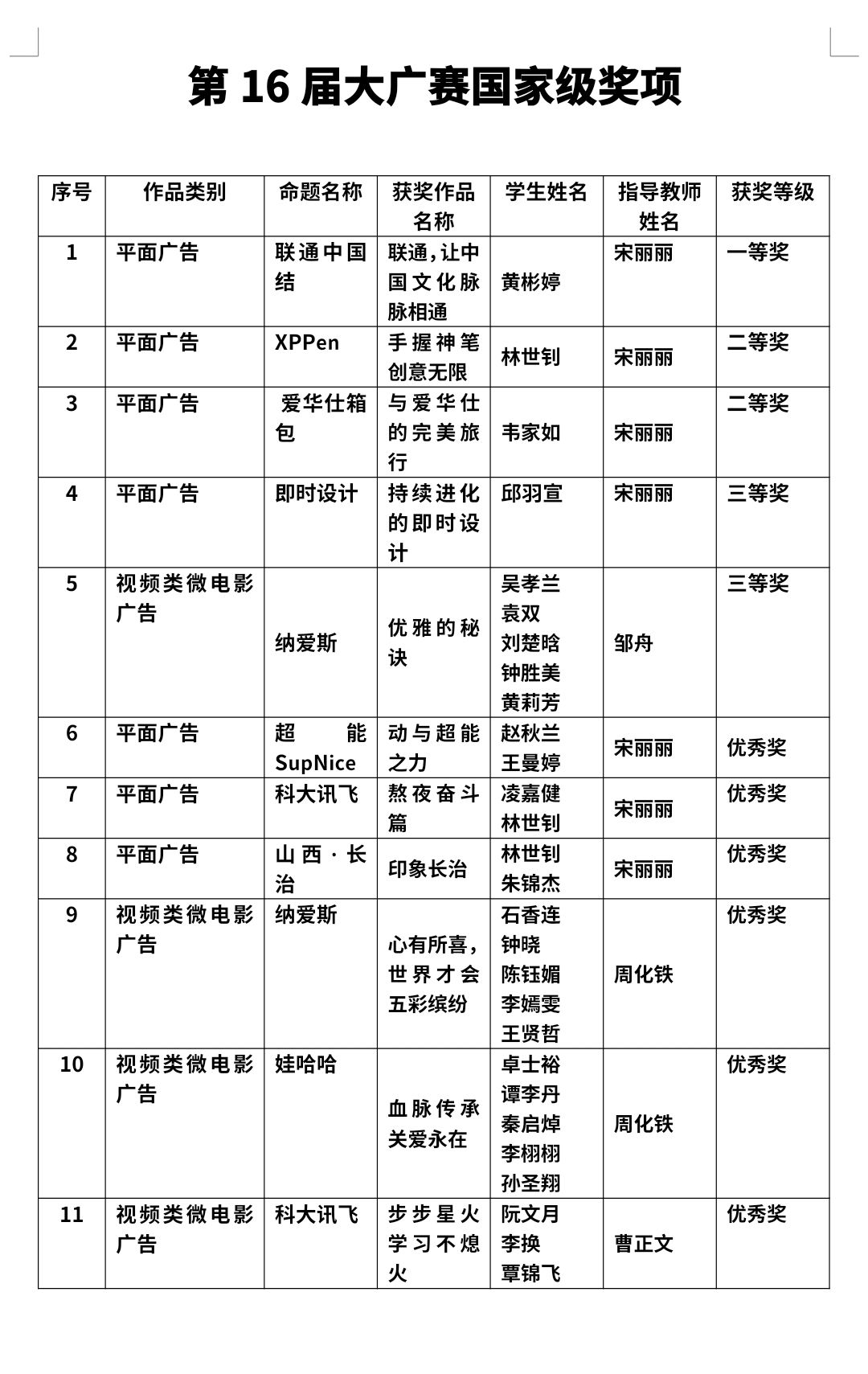 (国家级获奖名单)