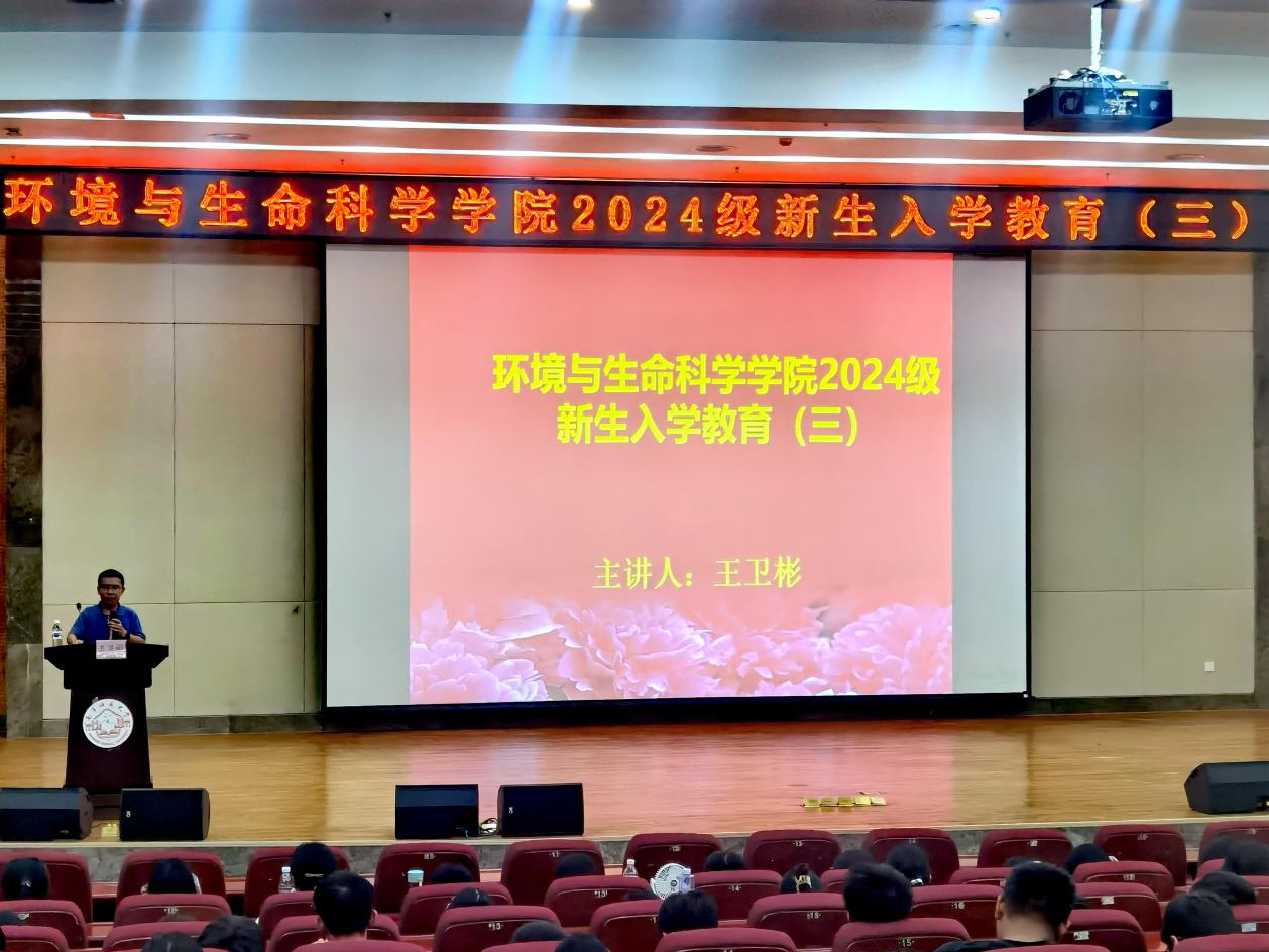 为了让新生们更好地适应大学生活,帮助他们更好地了解大学生职业生涯规划的重要性,环境与生命科学学院于9月18日晚在武鸣校区图书馆报告厅举办了2024级新生入学教育系列讲座第三讲。本次讲座由学院党委副书记王卫彬主讲。