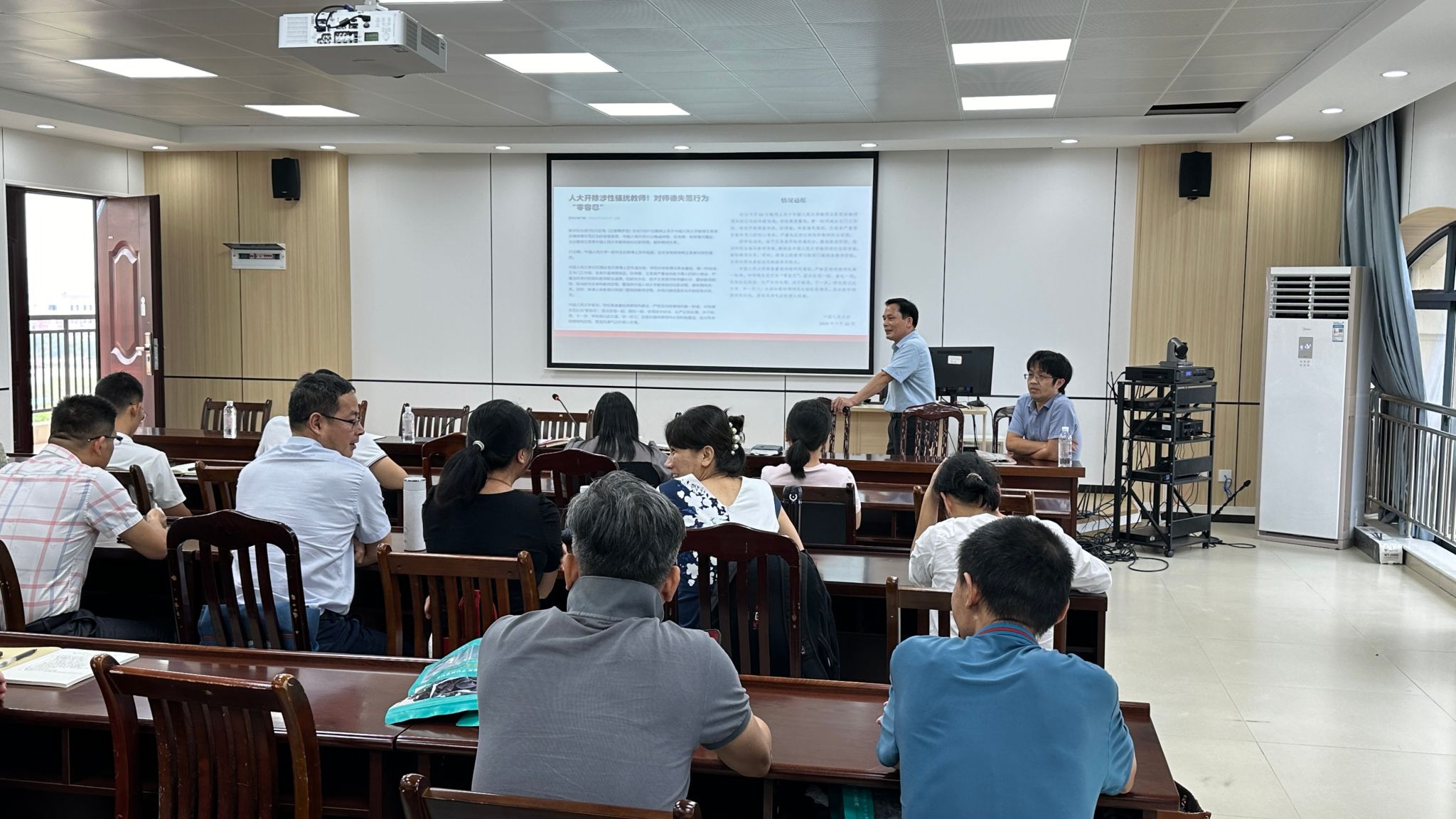 会上,余书记组织学习习近平总书记在全国教育大会上的重要讲话精神和《中共中央国务院关于弘扬教育家精神加强新时代高素质专业化教师队伍建设的意见》。余书记指出要传承和弘扬教育家精神,牢记为党育人、为国育才的初心使命,努力培育担当民族复兴大任的时代新人。随后,余书记以“深刻领会教育家精神 高位引领师德师风建设”为题,深入讲解了教育家精神的“六大内涵”、“四大逻辑”;阐述师德师风的实践路径。他要求广大教职员工要自觉把教育家精神转化为执教的理想和追求,把“师德师风”转化为鲜活实践,争做时代的“大先生”。最后,余书记传达学习学校2024年第三次党建工作例会暨党委教师工作委员会会议精神和《关于集中开展师德师风警示教育活动的通知》要求,组织全体教职工一同学习了《新时代高校教师职业行为十项准则》和《教育部公开曝光的违反高校教师职业行为十项准则典型案例》。