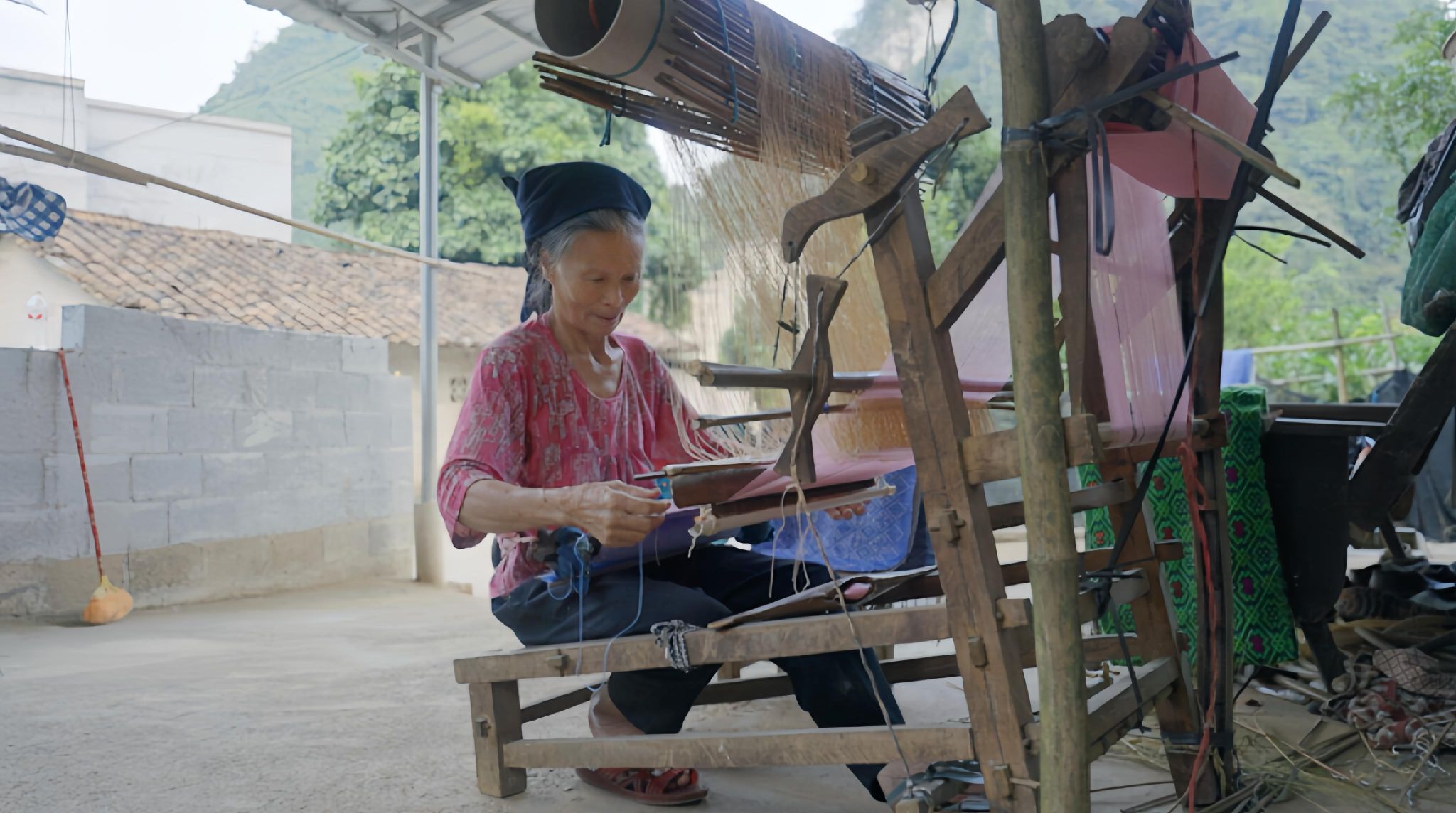 随后调研组一行驱车先后前往位于崇左市龙州县金龙镇的那莫屯、板池屯(美女村),走入编织壮锦的老奶奶家中,走进壮寨木屋,观摩、拍摄传承了千百年的壮锦制作过程。一代又一代的壮乡人凭借着自己的双手,织出许多精品壮锦,深受大家欢迎,近年来得益于互联网直播带货,越来越多的精品壮锦走出大山,走进城市,村民收入得到明显增长,乡村面貌得到了明显改善。