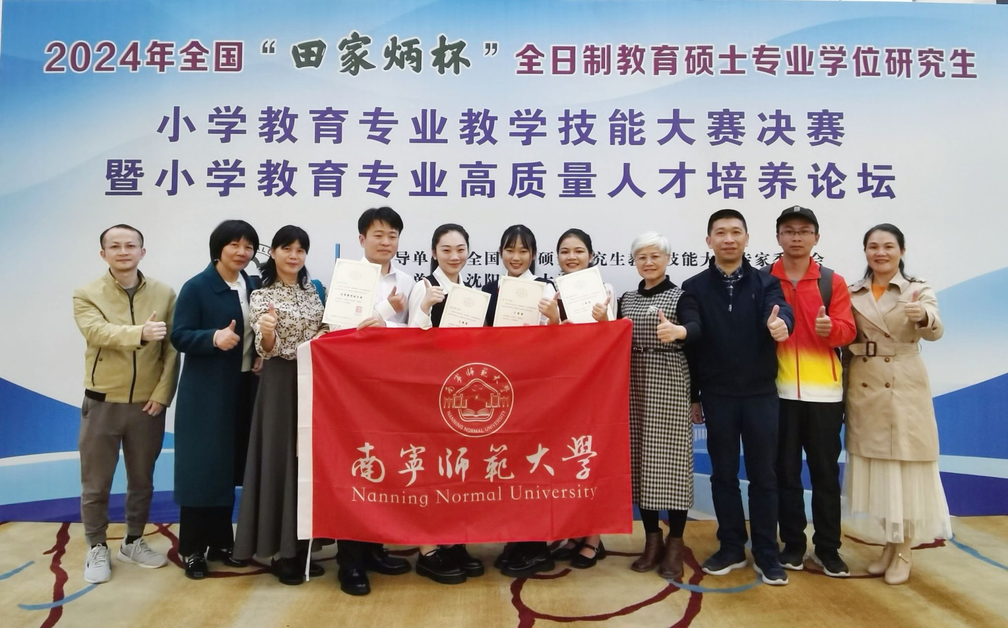 10月10日至13日,2024年全国“田家炳杯”全日制教育硕士专业学位研究生小学教育专业教学技能大赛决赛在沈阳师范大学举行,学校派出由初等教育学院卢锦珍副院长为领队、指导老师与研究生共同组成的队伍参赛。进入决赛的4名小学教育专业研究生分别参加小学语文、小学数学、小学科学3个赛道的比赛。经过激烈角逐,黄小倩获二等奖,尹芊、刘文清获三等奖,刘云昊获优秀教学设计奖。梁晓红老师获优秀指导教师奖。