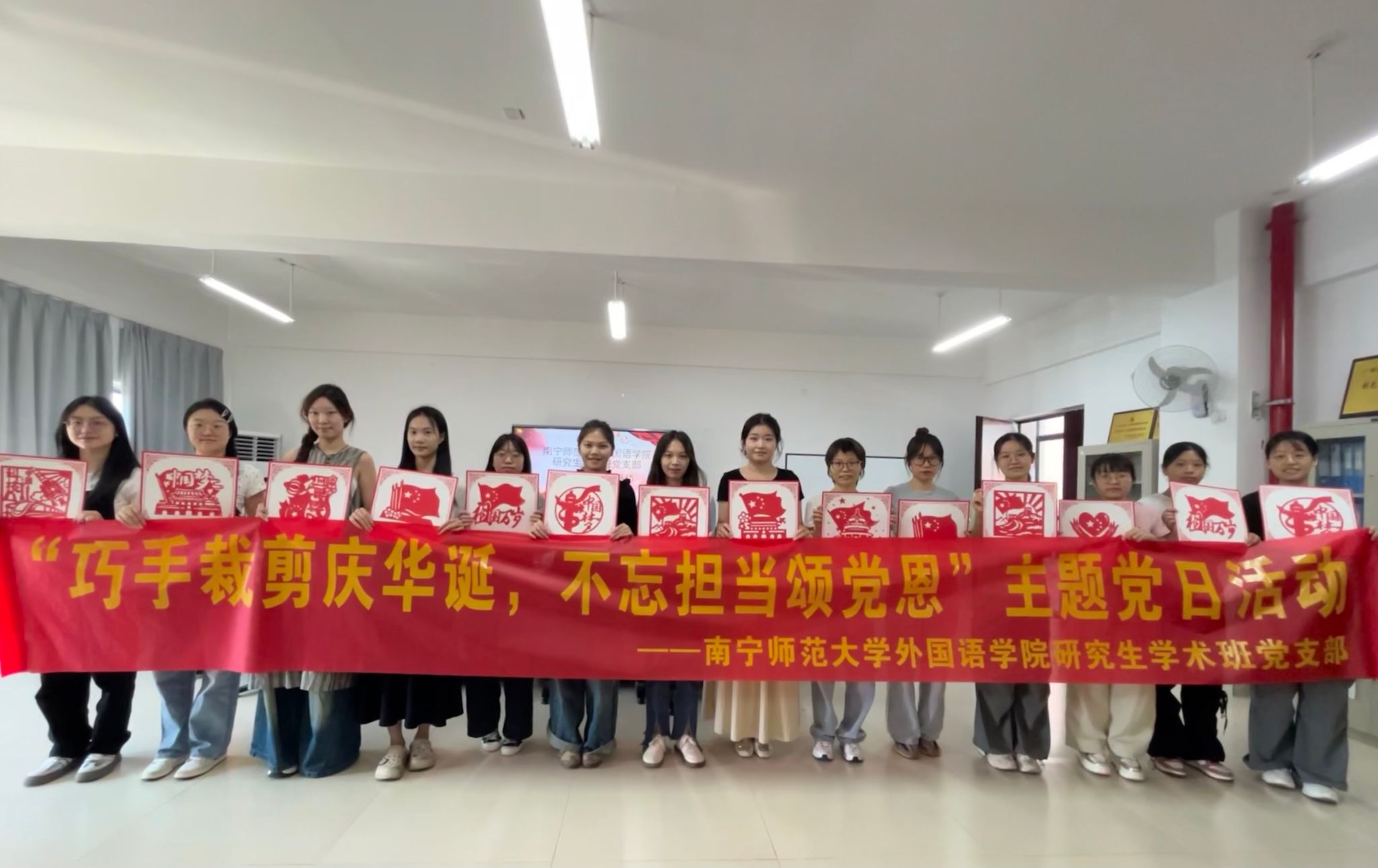 外国语学院研究生学术班党支部举办“巧手裁剪庆华诞,不忘担当颂党恩”主题党日活动