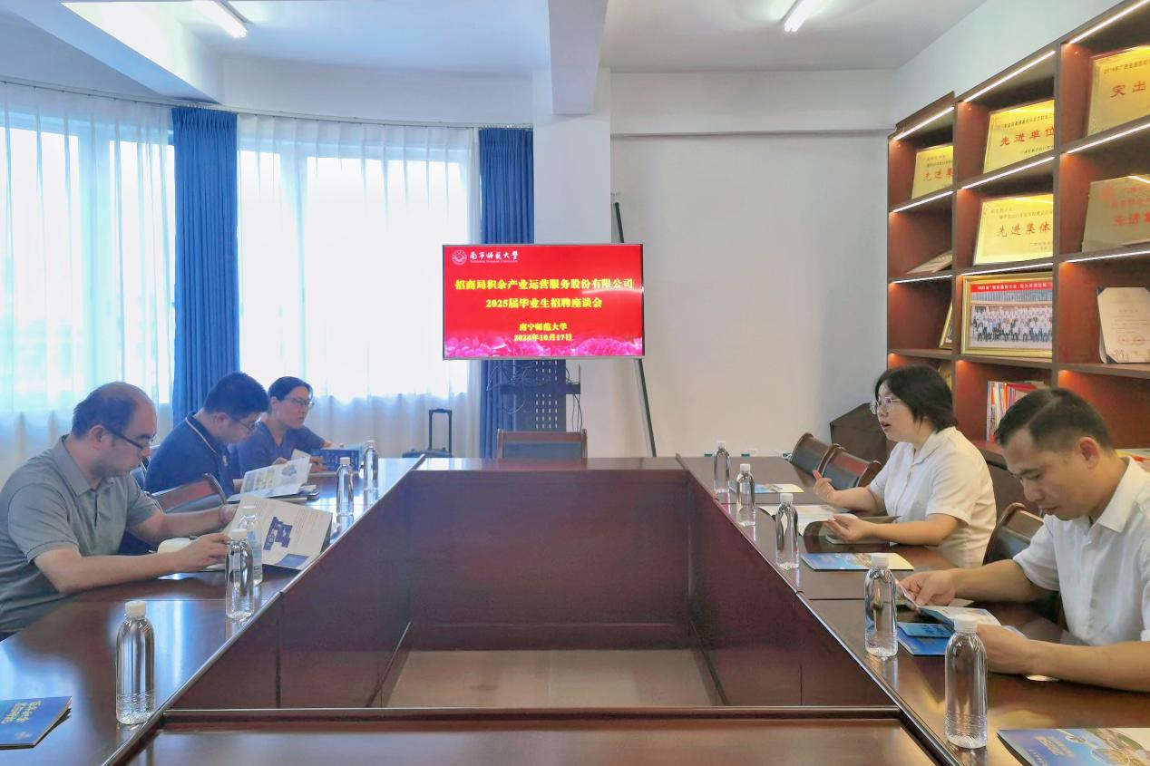 10月17日,学校招生就业处与招商局积余产业运营服务股份有限公司(以下简称“招商积余”)在明秀校区行政楼616会议室开展2025届毕业生招聘座谈交流会,招商积余公司南宁分公司人事主管李娟,项目经理赵立强,学校招生就业处、经济与管理学院、物理与电子学院等部门就业相关负责人参加会议。
