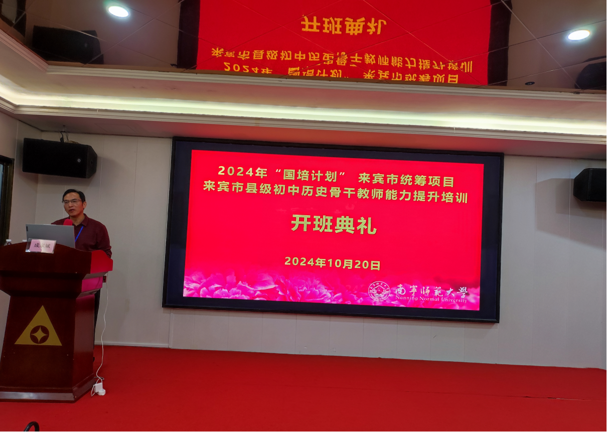 2024年10月20日,由南宁师范大学法学与社会学院承办的2024年“国培计划”来宾市县级初中历史骨干教师能力提升培训班在江西南昌顺利开班。来宾市教育科学研究所成家斌副所长,南昌市教育局特级教师李福南,授课专家代表以及50名来宾市县级初中历史骨干教师出席开班典礼。开班典礼由南宁师范大学法学与社会学院历史系主任刘方富主持。