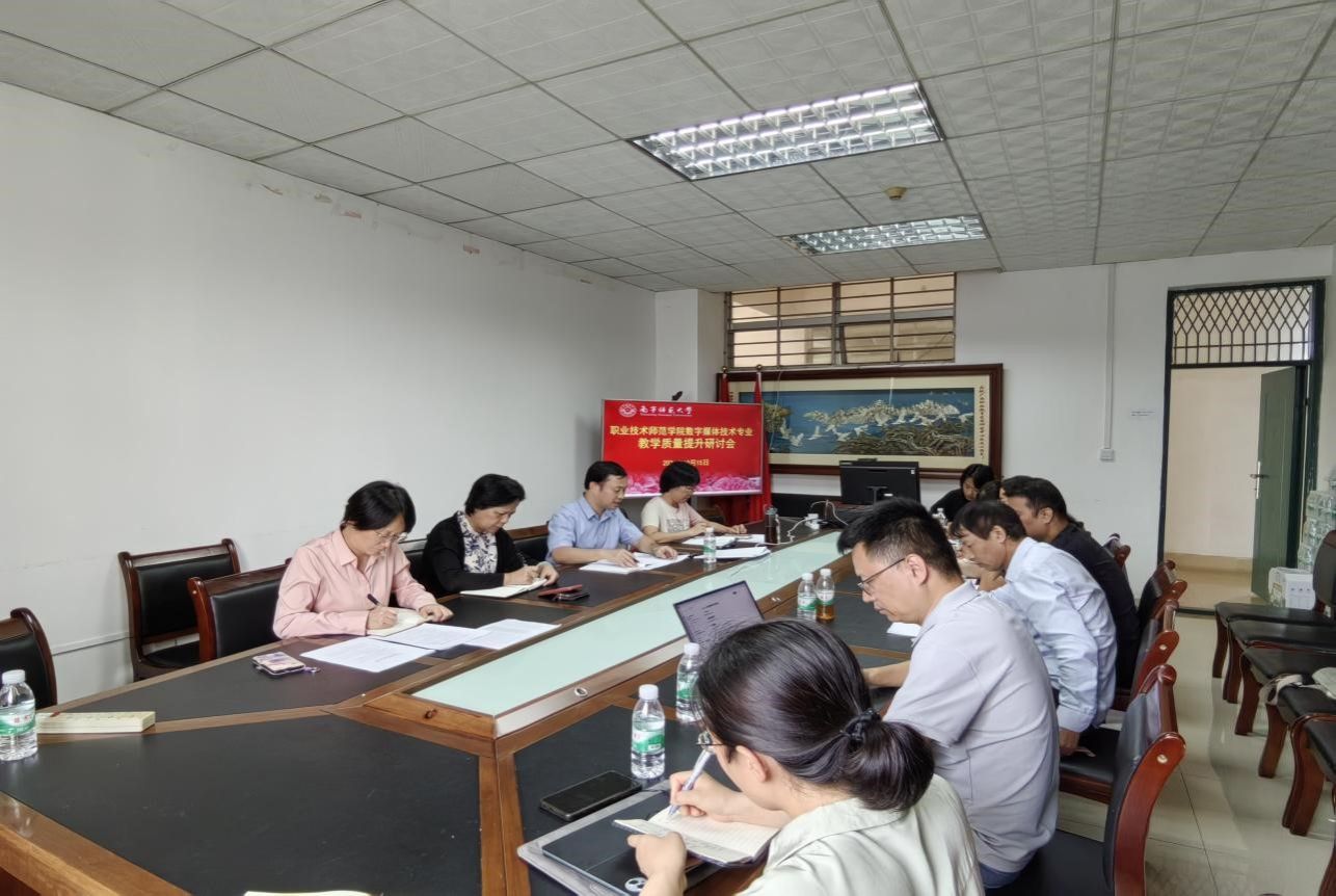 10月15日下午,职业技术师范学院在文星楼810会议室开展数字媒体技术专业本科教学质量提升研讨会,会议围绕数字媒体技术专业人才培养、校企合作、双创大赛、实践教学等方面的改革发展进行了交流。学院党委书记李穗、学院院长陈良,党委副书记刘卫华以及分管教学副院长蓝洁,数字媒体技术专业教研室全体专任教师,班主任、辅导员、教学秘书参加本次研讨会。