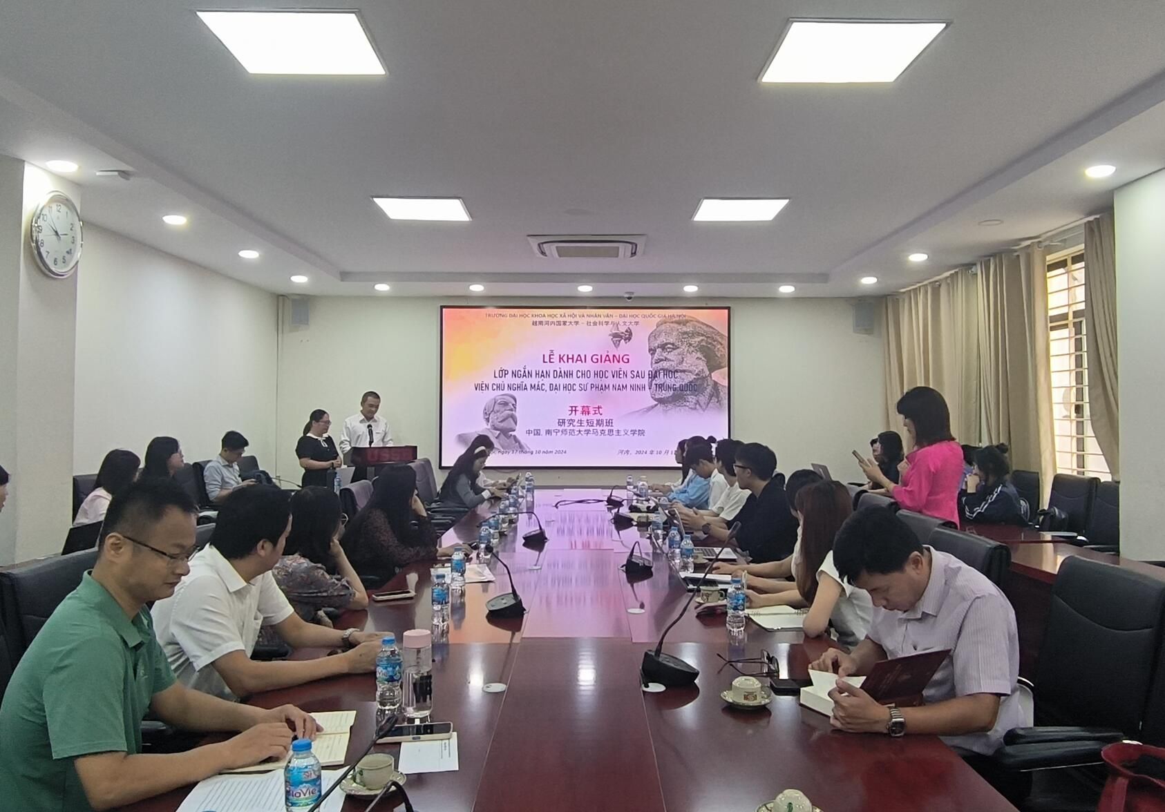 为加强中越两国高校的交流与合作,10月17日上午,我校马克思主义学院研究生赴越南高校访学研修班开班仪式,在河内国家大学所属社会科学与人文大学举行,仪式由河内国家大学哲学系吴登全博士主持。