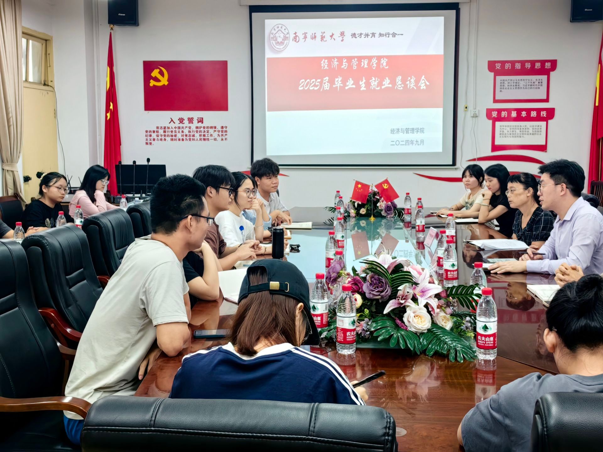 为进一步强化毕业生就业指导工作,为学院2025届毕业生提供针对性的指导和帮助,9月26日,经济与管理学院在明秀校区文星楼开展2025届毕业生就业恳谈会。学院主持行政工作的副院长何玲玲、辅导员代表及2025届毕业班学生代表参会。本次会议由学院党委副书记何一飞主持。