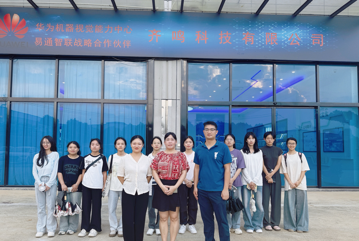 在广西南宁齐鸣科技有限公司,师生一行受到了企业负责人的热情接待。这家成立于2018年的高科技企业,在电子元器件、机电组件设备制造与销售,通信设备制造,软件开发以及信息系统集成服务等多个领域均有所建树,拥有众多自主知识产权。在企业负责人的带领下,大家参观了企业的创业孵化基地,感受到了浓厚的创新氛围。交流中,企业负责人详细介绍了公司的发展历程、业务布局以及当前急需的人才类型,并表达了与学院在人才培养、就业创业等方面开展深度合作的意愿。