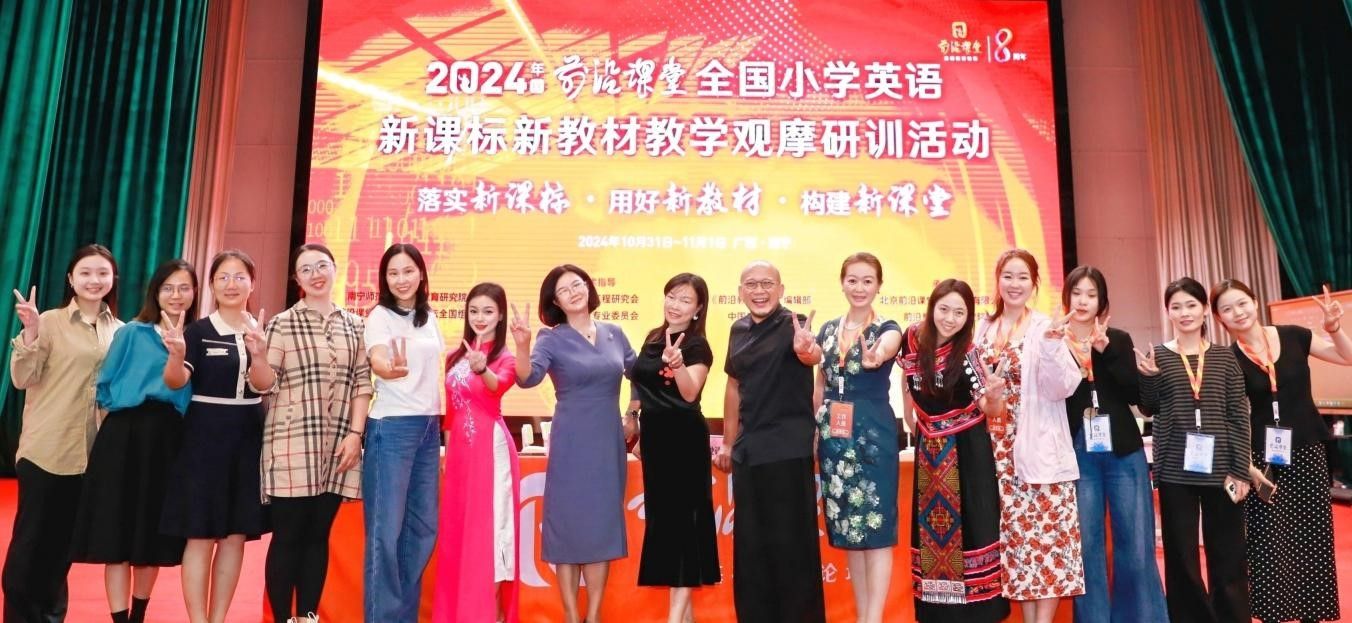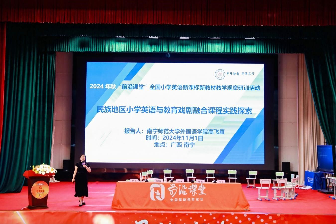 2024年10月31日-11月1日,2024年秋“前沿课堂”全国小学英语新课标新教材教学观摩研训活动在广西南宁圆满召开。南宁师范大学外国语学院副院长高飞雁带领学院教育戏剧团队作为本次大会特邀嘉宾,与来自全国各地的名师专家、优秀教师代表汇聚一堂,共同参与这场精彩的新教材研讨活动。