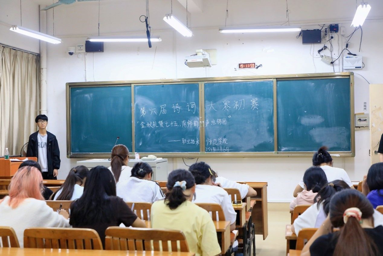 11月6日晚,职业技术师范学院在文星楼208教室举办第六届诗词大会初赛。该活动以诗词为载体,引领同学们探寻文化底蕴,感受诗词韵味,培育诗意心灵,丰富校园文化生活,营造诗意盎然的校园氛围。