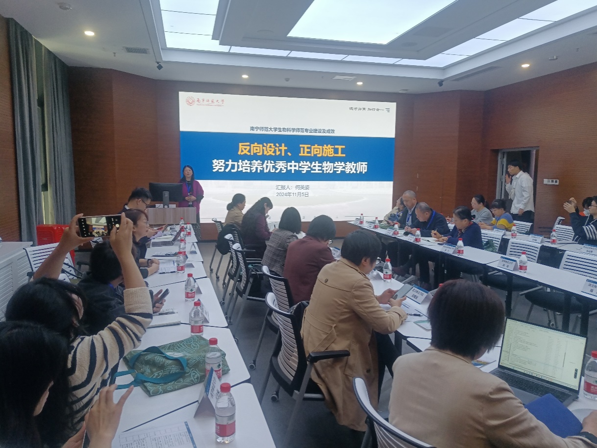 会上,北京师范大学生命科学学院院长窦非教授、南京师范大学教师教育学院副院长解凯彬教授、东北师范大学生命科学学院副院长李晓雪教授、华中师范大学生命科学学院李娟副教授等14人作了主题报告,我校环境与生命科学学院何英姿院长作了“反向设计,正向施工,努力培养优秀中学生物学教师”的报告,并与到会的各院校代表围绕生物学师范教育卓越人才的培养、课程体系的完善、生物学教育未来发展方向等展开交流与讨论。