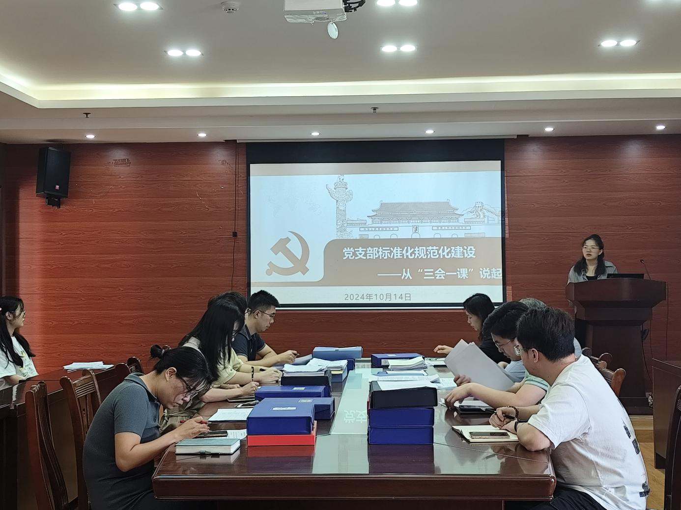 为全面提升“三会一课”制度执行力,进一步加强基层党组织建设,推动党建工作迈上新台阶。经济与管理学院于10月14日在文理综合楼理楼515室,召开支部标准化规范化建设专题培训会以及“三会一课”制度执行情况专项检查。本次培训由学院党委书记韦海鸣主持,各支部书记参加此次培训。