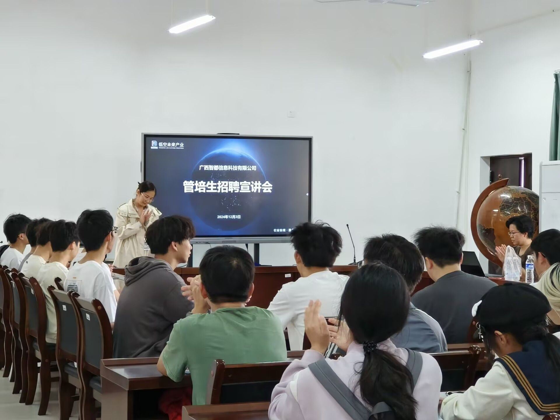 12月3日下午,地理科学与规划学院邀请智都信息科技有限公司进校宣讲招聘,学校地理信息科学、计算机、物流工程、物流管理、通信工程等专业2025届近百位未就业的毕业生参加招聘。