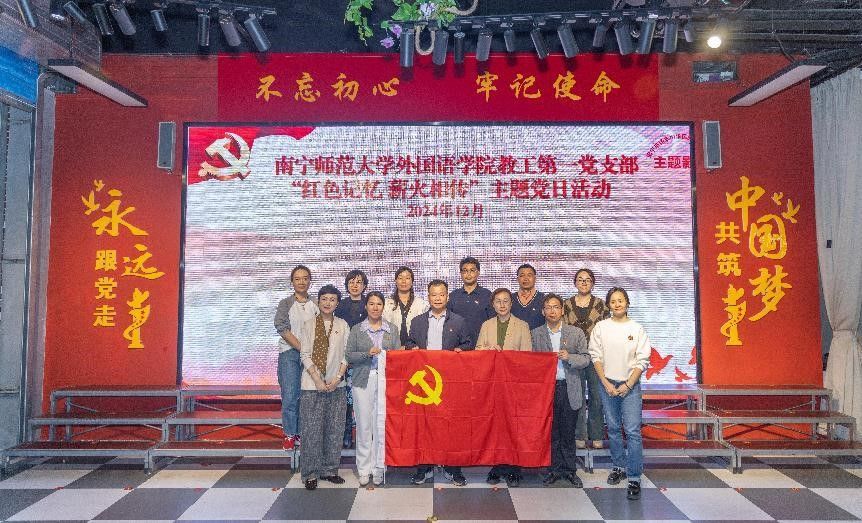 2024年12月3日下午,南宁师范大学外国语学院教工第一党支部的党员们在南宁市电影党校度过了一个非常有意义的下午。他们通过参与“红色记忆 薪火相传”主题党日活动,不仅观看了红色电影,学习了党史,还深刻体会到了作为一名党员的责任与荣耀。党员们在讲解老师的带领下,参观了“看电影 学党史”主题展区,观看了《百部电影讲党史》电影微党课视频,并在红船启航处重温了入党誓词,进一步坚定了理想信念,最后,大家进行了合照留念,记录下这一难忘时刻。