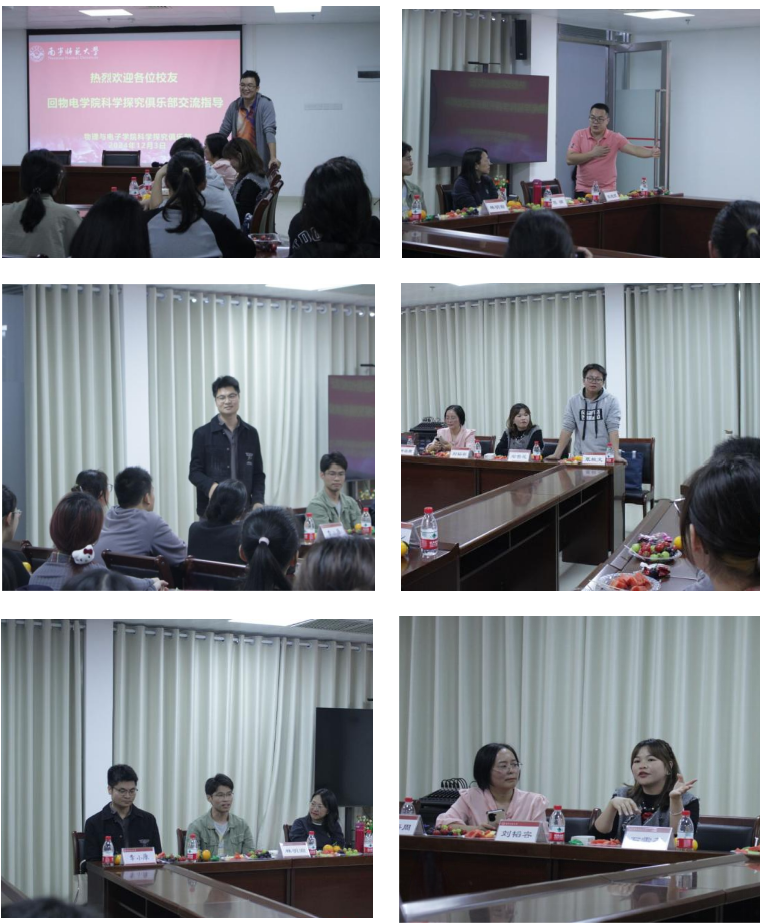 刘韬容老师和陈楠老师首先对校友回校交流指导表示热烈欢迎,回顾了我院科学探究俱乐部自2006年创建以来的发展历程和人才培养贡献,强调了该社团作为连接中小学实践教学平台服务社会科普和培育大学生创新实践能力的宗旨。