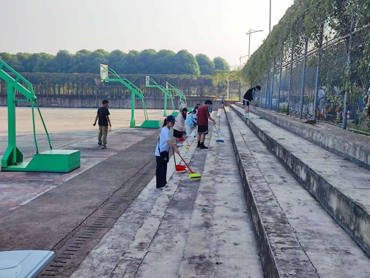 活动过程中,志愿者们展现出了极高的热情和干劲。他们手持扫把、垃圾铲、垃圾袋等工具,不畏辛劳、不惧脏乱,认真清扫着校道上的落叶与垃圾。他们的身影在校园中忙碌穿梭,成为了一道亮丽的风景线,充分彰显了文苑学子积极向上、无私奉献的精神风貌。志愿者们用实际行动诠释了“奉献、友爱、互助、进步”的志愿服务精神,为构建绿色校园贡献了自己的力量。活动尾声,工作人员与志愿者们一同合影留念,用镜头定格下了这一充满意义的时刻。