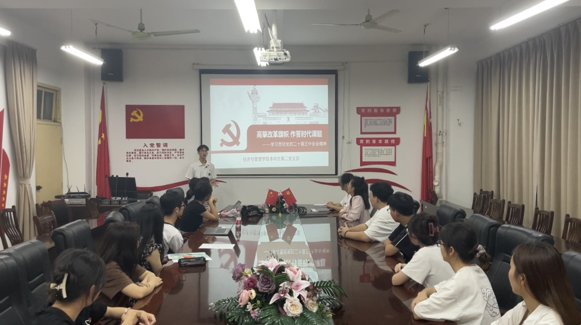 为深刻认识党的二十届三中全会的重大意义、国家事业发展取得的新的重大成就,进一步推动党的二十届三中全会精神落实落地,经济与管理学院各学生党支部于2024年9月至10月期间开展了以“学思践悟党的二十届三中全会精神 为经济与管理学院高质量发展凝聚磅礴力量”为主题的学习活动,旨在进一步加强经济与管理学院各党支部的思想建设和理论学习,引导各支部全体党员深刻领会全会精神,凝聚奋进力量。