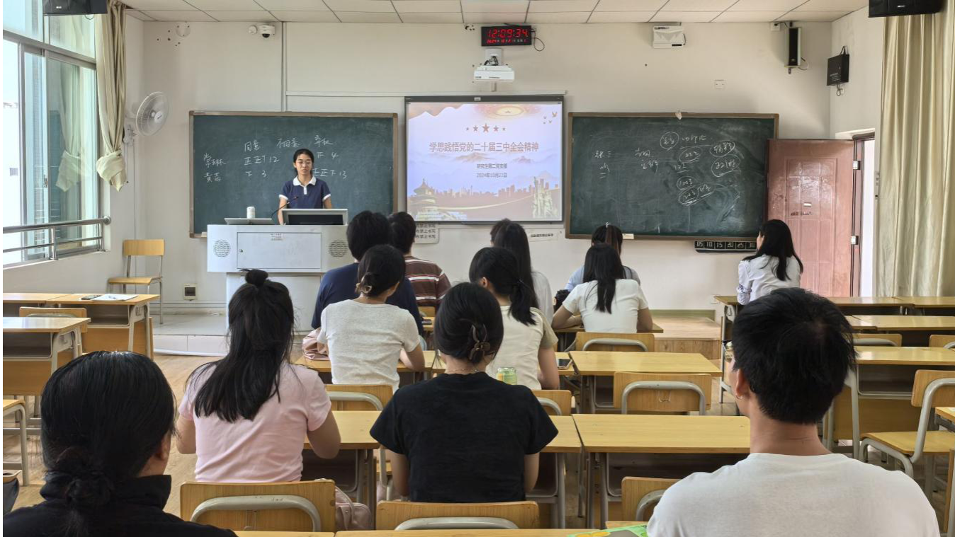 本科生第六党支部支部书记陈思娴同志带领党员深入研读会议文件,领会全会提出的新思想、新观点、新战略,将会议精神转化为推动学习、工作和实践的动力,不断提高自身的政治素养和业务能力,为实现中华民族伟大复兴的中国梦贡献青春力量。