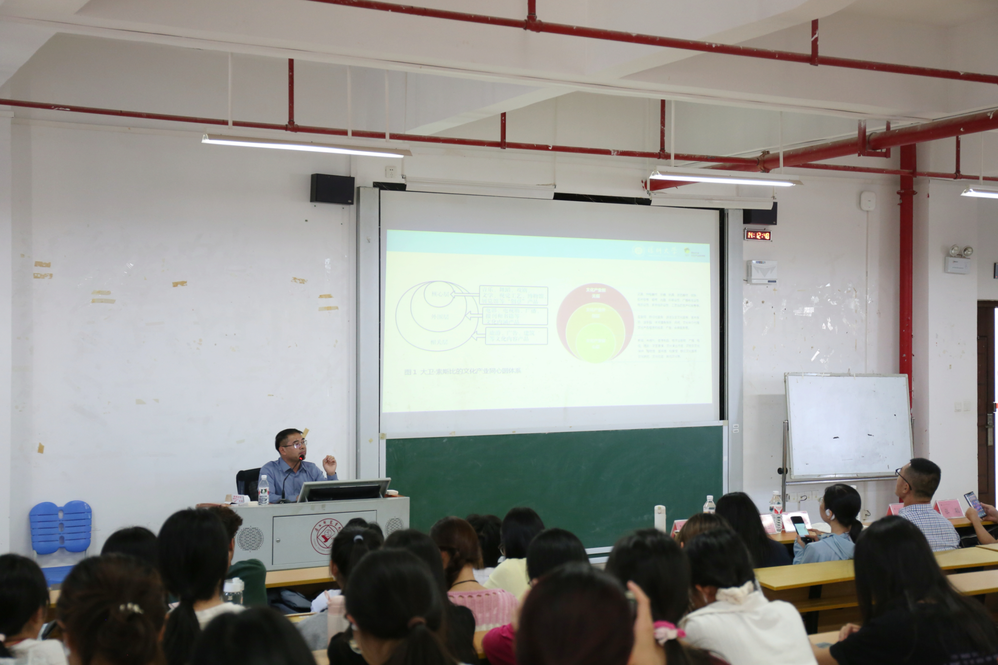 为助推文化产业管理专业创新发展,开拓文化产业管理专业学生学术视野,经济与管理学院于11月19日下午举办了一场主题为“文化产业的发展进路与实践创新”的学术讲座,讲座特邀深圳大学文化产业研究院院长周建新教授主讲。本次讲座由经济与管理学院院长助理赵鹏副教授主持,文化产业管理系系主任张聪博士、曾艳红副教授、李达副教授,漆亚莉老师、康青林老师、肖琳文老师,以及文化产业管理系全体学生参加了此次活动。