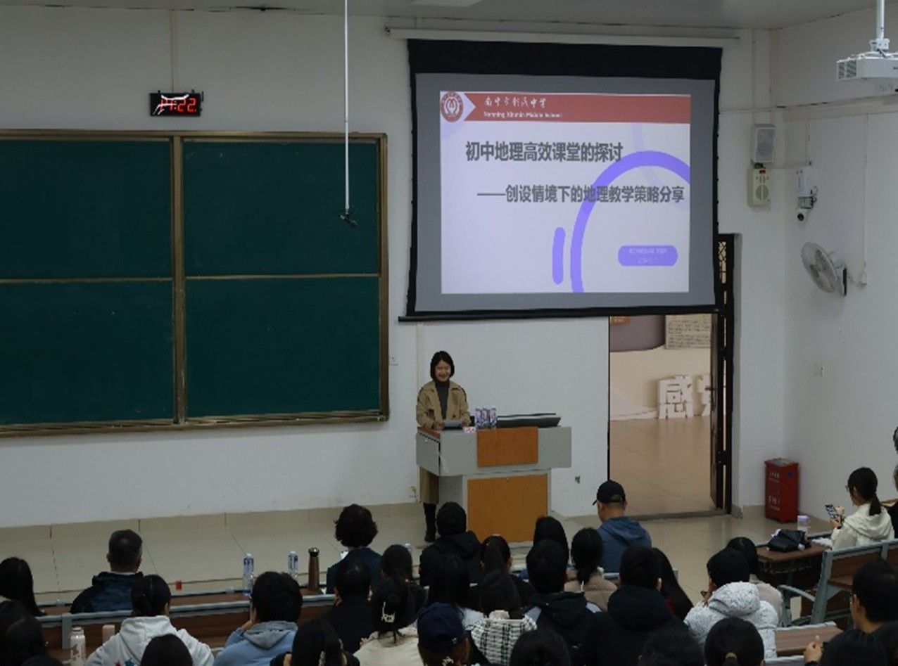 为了进一步促进地理科学专业本科和硕士研究生切实了解初高中地理教育教学以及班级管理的情况,指引其将来进行高效教学与班主任教育实践工作,12月10日,地理科学与规划学院邀请了南宁市新民中学初中地理备课组长陈美荣、一级教师秦东玲、高中地理备课组长游世勇老师在武鸣校区地源楼B-107教室分别作“初中地理高效课堂教学的探究”、“基于新课程标准背景下的初中地理备考经验分享”与“青年教师的快速成长之路”的专题讲座。此次讲座由地理科学系主任宋立全和副主任韦晨策划,地理科学系教师代表、地理科学专业本科生及学科地理硕士研究生参会。