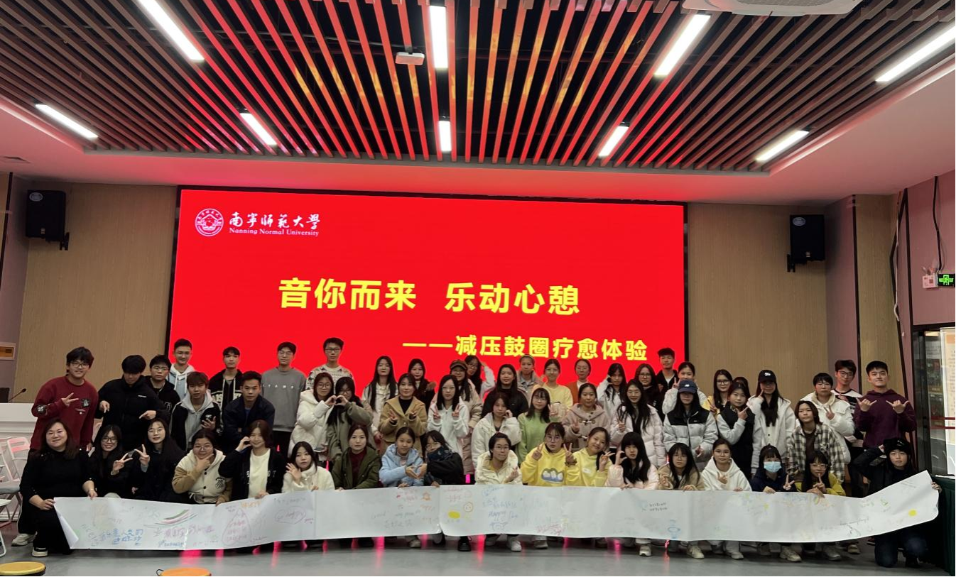 鼓圈作为团体即兴打击乐演奏形式,为参与者提供独特表达途径,是一种高效的心理减压方式。活动以鼓圈技术为依托,引领师生挖掘自身积极资源,激发内在潜能,并运用艺术疗愈促进身心健康,有力推动了和谐校园氛围的营造。活动现场,师生们在节奏的共鸣中释放压力,收获心灵的滋养与成长。