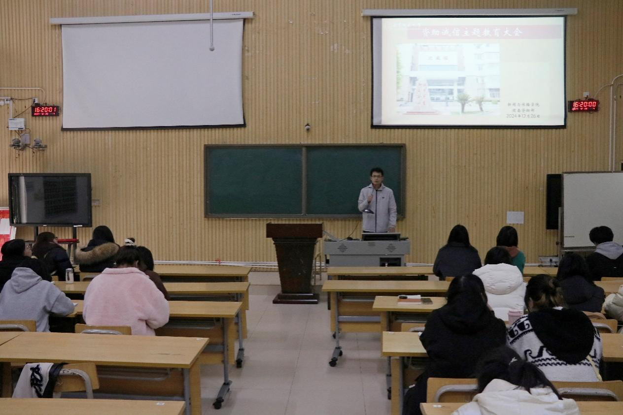 12月26日15时,新闻与传播学院于五综楼107室召开资助诚信主题教育大会。本次会议由学工办辅导员周展林老师主讲,团委学生资助部成员、各班资助委员及2024-2025学年获得各类奖助学金的学生参加了本次会议。