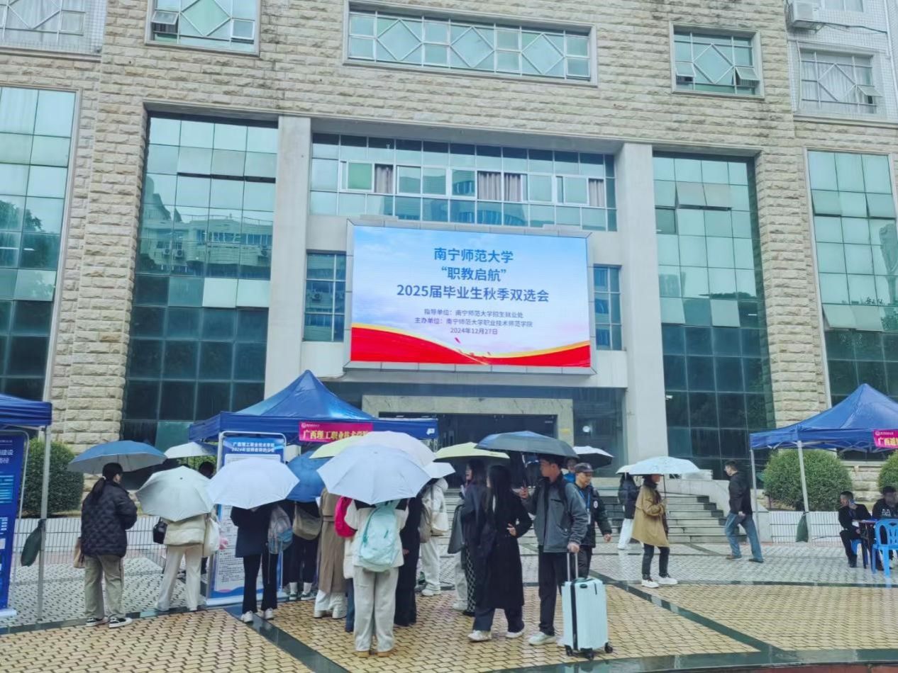 为贯彻落实党中央、国务院和自治区党委、政府及学校关于高校毕业生就业工作的决策部署,12月27日上午,职业技术师范学院在招生就业处指导下在文星楼广场举办了南宁师范大学“职教启航”2025届毕业生秋季双选会。学校副校长王国红莅临现场了解情况,指导就业工作。职业技术师范学院党委书记李穗、院长陈良、党委副书记刘卫华等学院领导、老师现场指导毕业生求职就业。