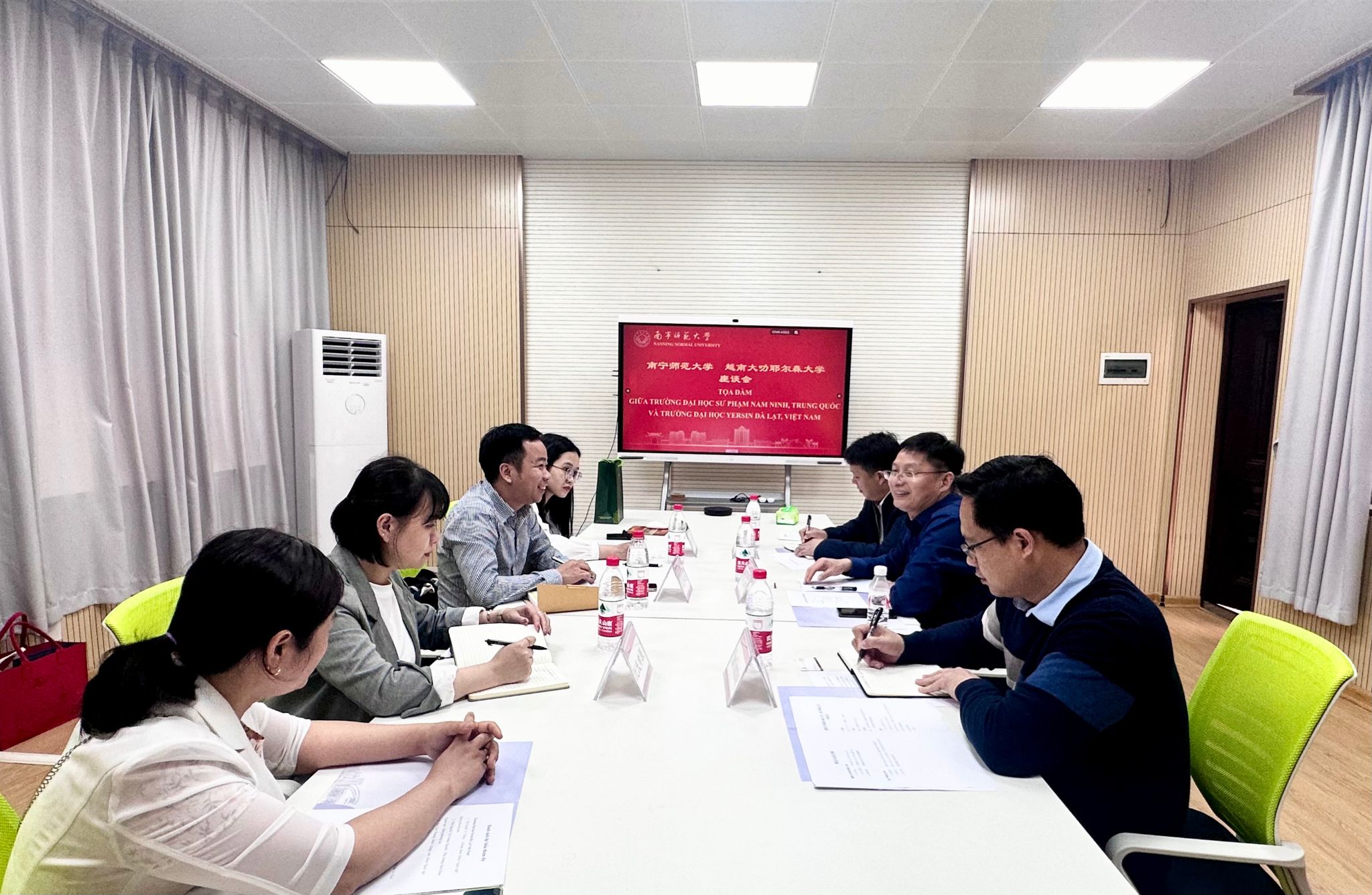3月4日下午,越南大叻耶尔森大学外国语与东方学系阮伟通主任一行4人到我校访问。我校国际交流合作处处长、国际教育学院院长杨绪明,国际交流合作处副处长/国际教育学院副院长陈传忠及国际交流合作处相关工作人员,在明秀校区外语楼109会议室接待了来访代表并进行了会谈。