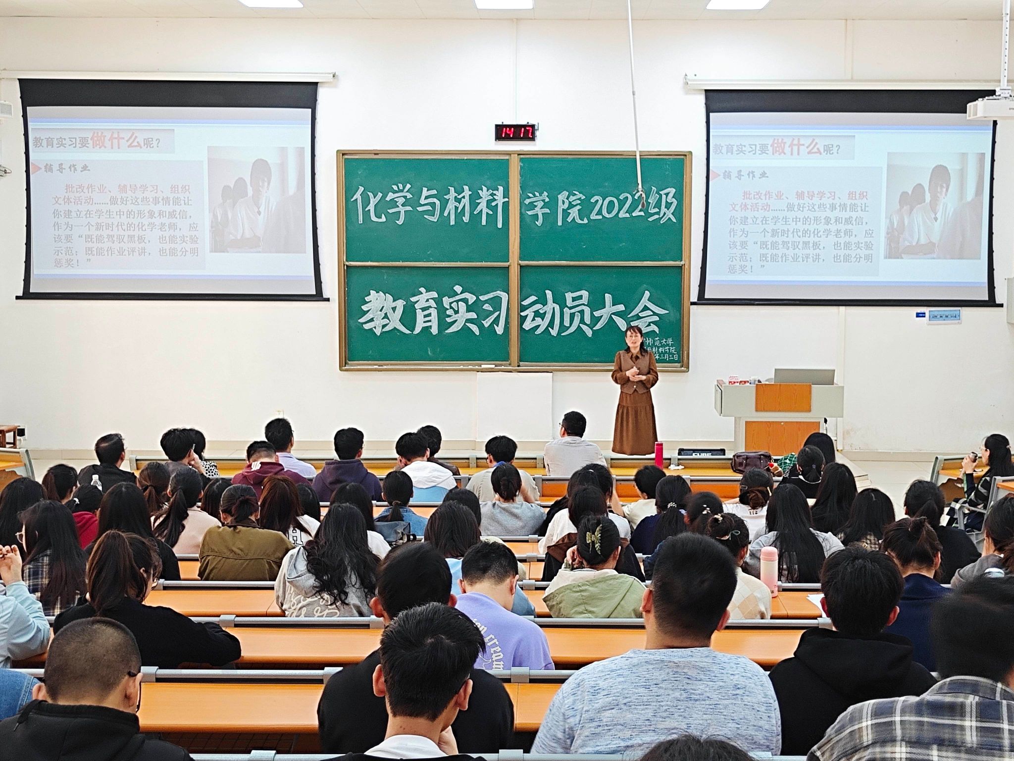 3月3日,化学与材料学院在武鸣校区地化楼B111教室召开了2022级师范生教育实习动员大会,学院全体领导班子成员及部分教师代表参加会议。