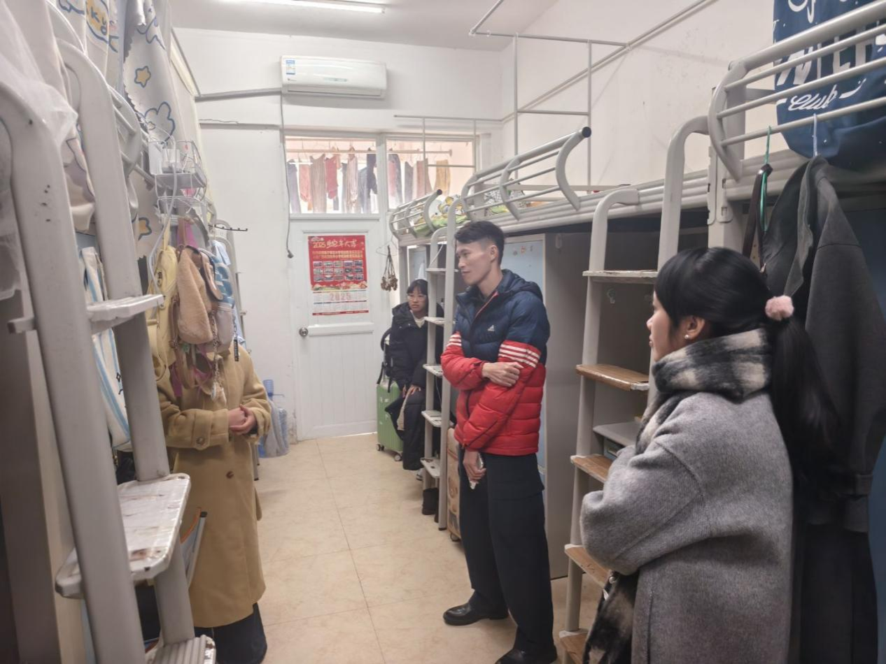 根据学校学生工作处开学初学生工作安排的通知,为深入了解学院2025届毕业生新学期学习、就业、生活情况及思想动态,3月7日下午,在学院领导的统筹安排下,学院辅导员们带着关怀与问候,深入毕业生宿舍开展走访慰问活动。