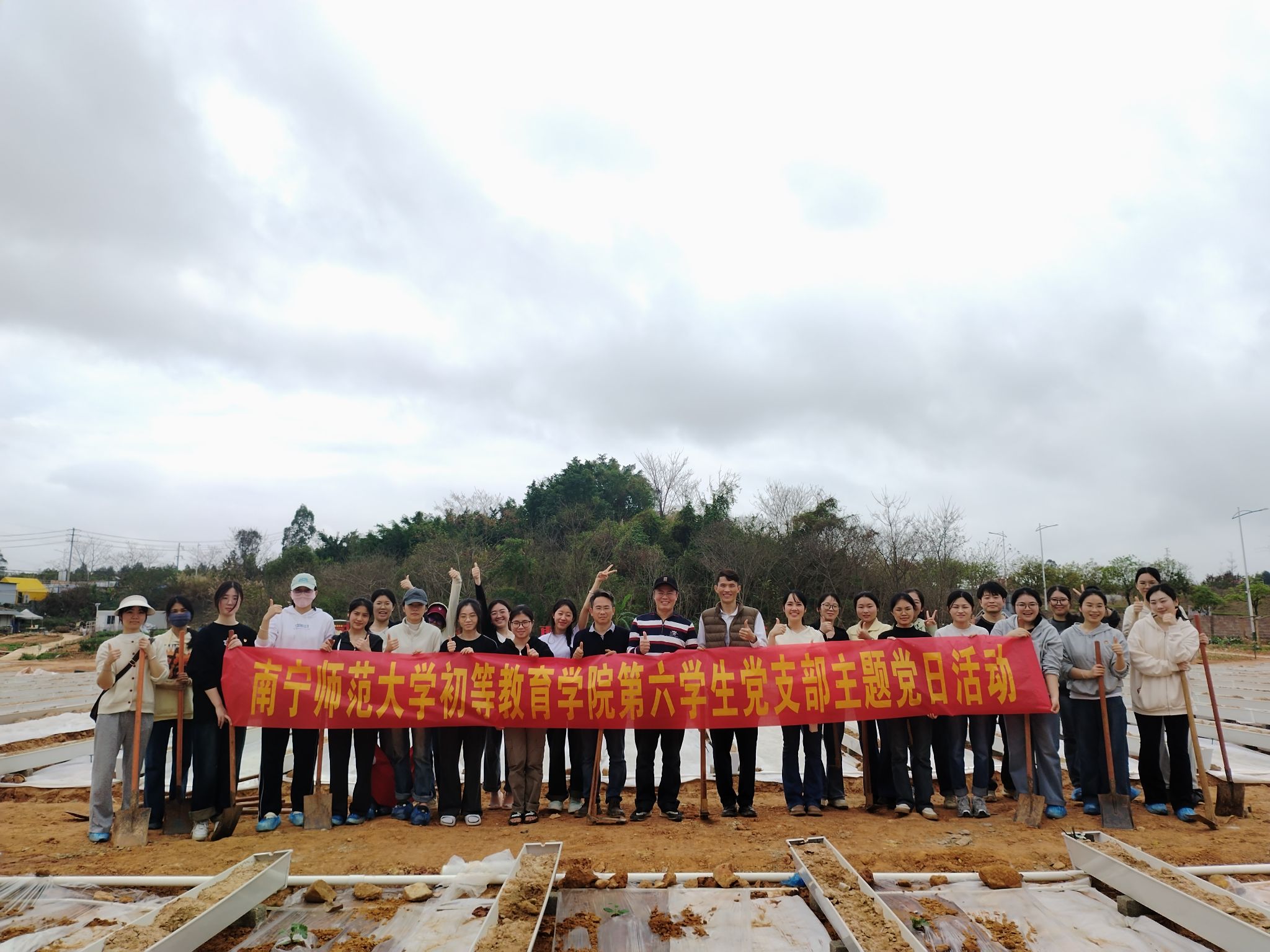 为深入贯彻落实党的二十大精神,培养党员尊重劳动、热爱劳动的意识,3月12日上午,正值植树节之时,初等教育学院第六学生党支部在五合校区劳动教育基地开展“厚植红色根脉,耕耘绿色未来”主题党日活动,学院党委副书记苏学权、党委组织员何聪、辅导员韦文平、支部书记覃诗雅及支部全体党员参与。