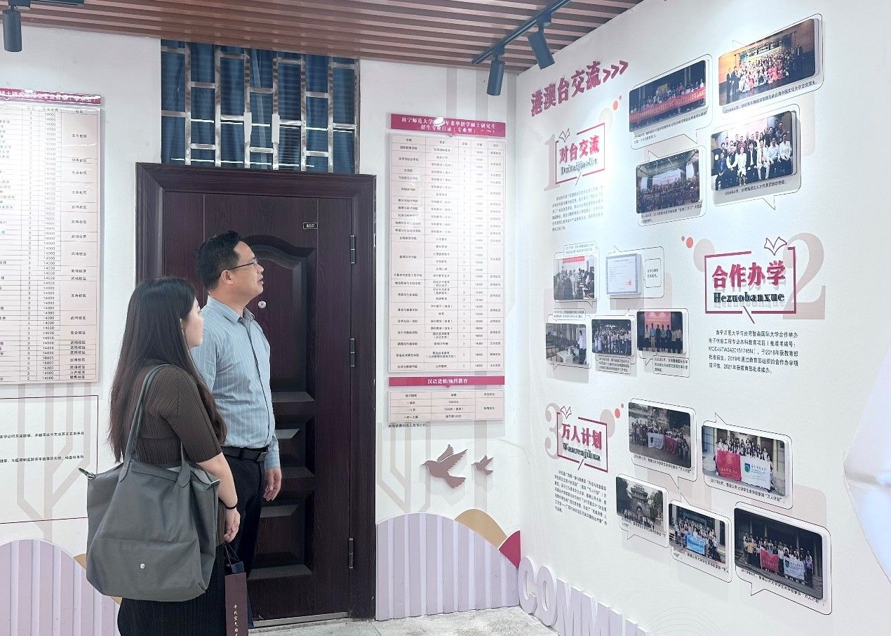 会后,双方一同参观了外语楼港澳台教育文化交流展示区。