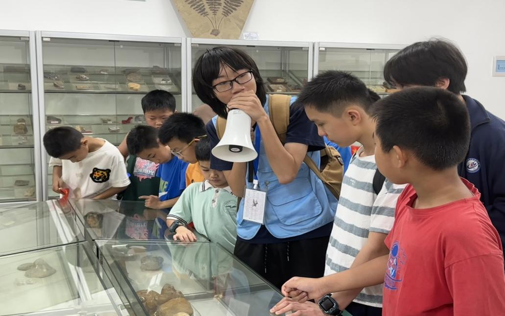研学之旅首站,小学生踏入气象园,他们在志愿者的耐心讲解下,不仅熟悉了室外温度测量器材的用途,还亲自读取了当日气温数据,近距离感受气象监测的精准魅力,还深入了解日晷这一古老计时工具,全方位领略了古人的智慧。随后,大家走进昆虫标本室、地质标本室和自然资源馆,一场与自然的亲密对话就此展开,极大地激发了他们对地理学的科学热情,也在潜移默化中锻炼了观察力与动手能力。志愿者们安排小学生们来到天文穹顶观看昆虫影片,沉浸在这场视觉与知识的盛宴中。
