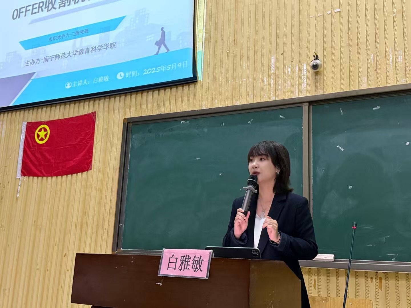 为帮助同学们提升求职技能,5月9日晚,教育科学学院在五综107教室举办了“职途领航,Offer进阶” 主题团日活动,邀请资深职场导师白雅敏担任主讲人,为同学们带来“offer收割机养成计划”。学院党委副书记谢珊老师,学院团委书记,辅导员和兼职辅导员代表参加本次活动。