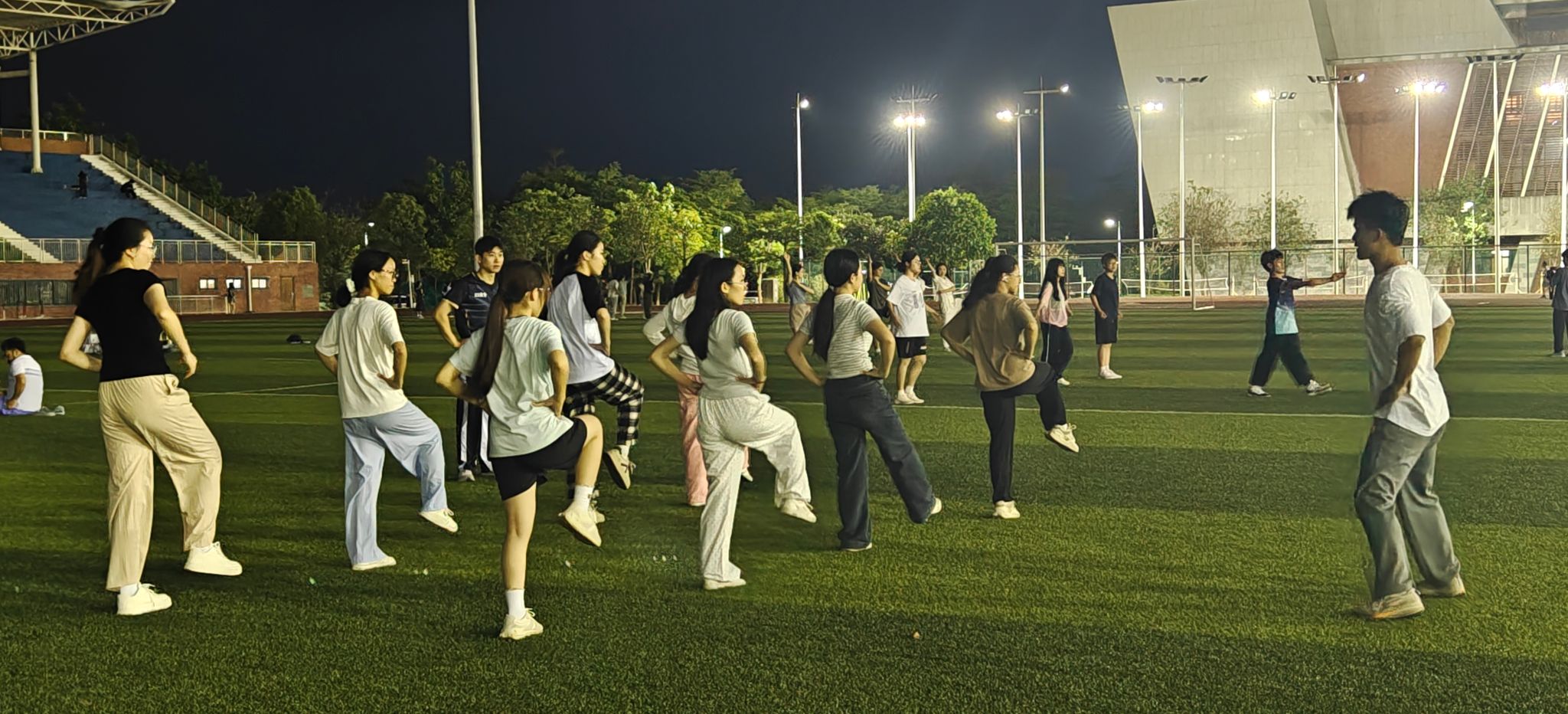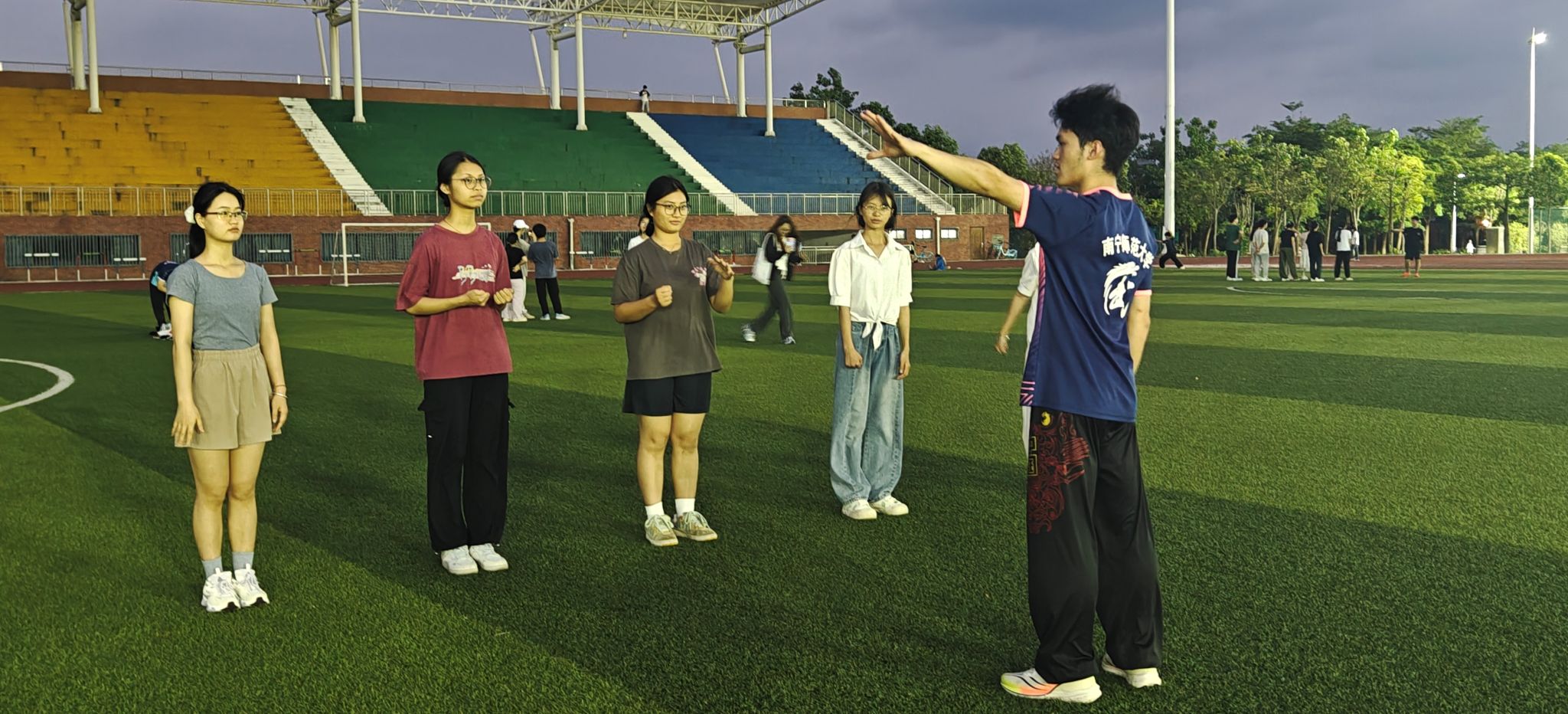 为传承中华传统武术文化,丰富在校生课余生活,近日,我校“星火跃动·青春夜练营”武术夜校第一期活动在武鸣校区松园田径场热力开营,本次活动由体育与健康学院团委和学校武术与民族传统体育协会举办。活动吸引了众多同学热情参与,第一期活动到场人数超过100人。