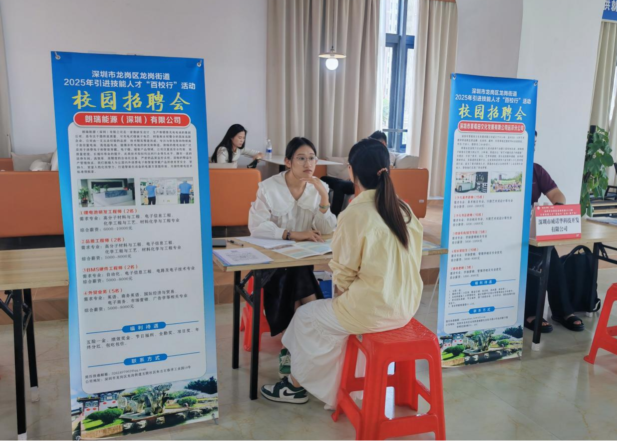 活动期间,招生就业处负责人与龙岗街道统计和企业服务中心负责人黄任远一行举行了座谈交流会。双方围绕深化校企合作、推进访企拓岗专项行动、共建实习实训基地以及搭建高效就业服务平台等议题进行了深入探讨,并就建立长期稳定的合作关系达成共识。