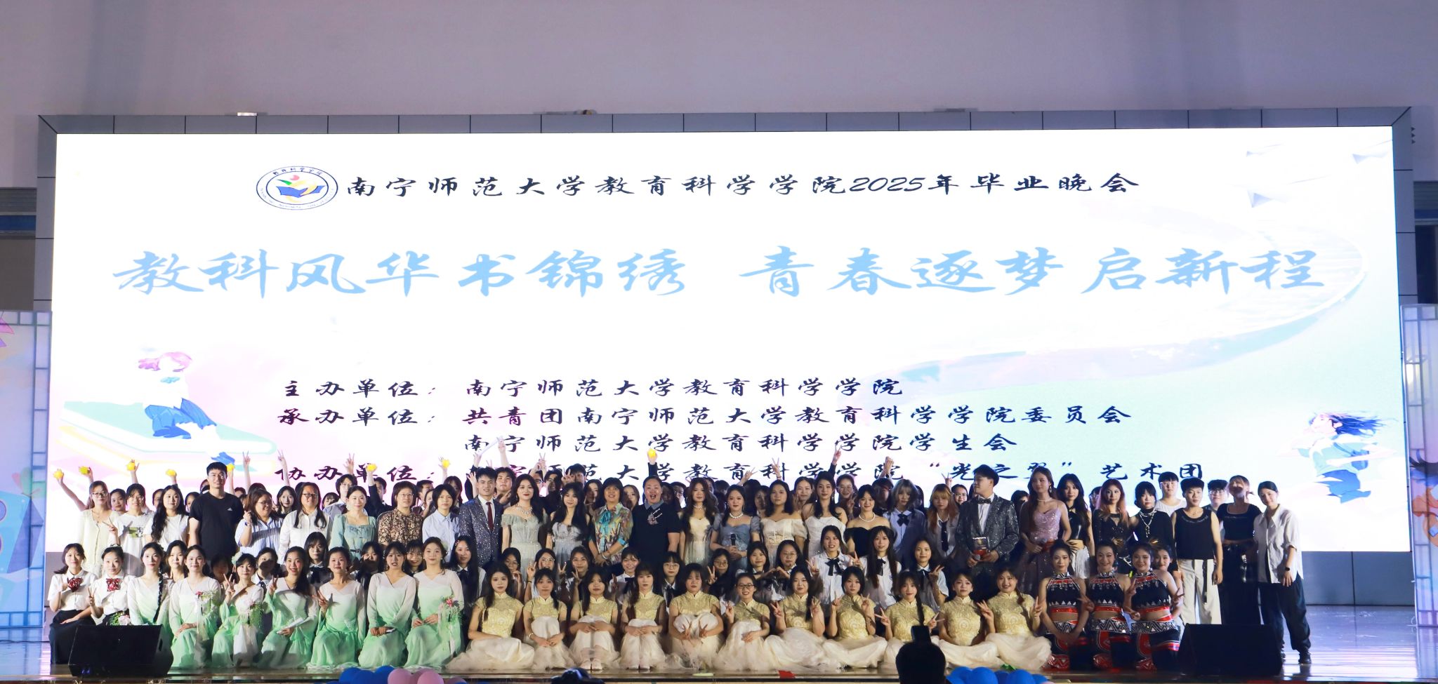 教育科学学院2025年毕业晚会在结束曲《一路生花》中圆满落幕。这场晚会不仅是对往昔时光的深情告别,更是迈向未来的崭新起点。愿毕业生们带着母校的祝福与期许,在人生新征程上扬帆起航,书写属于自己的精彩篇章。