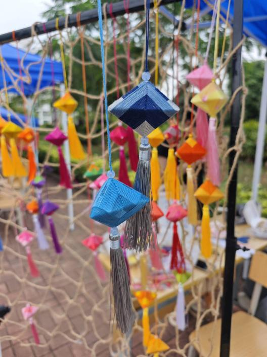 为保障活动有序开展,组织方制定了严格规则。仅允许校内个人或团体报名摊位,杜绝校外商家入驻,并要求售卖商品合规,禁止出现违禁物品,入驻摊主还需提交承诺书。活动共征集10个摊位,包含校园文创产品、非遗文化作品、手工作品等。其中以夹竹桃与文理综合楼为主题设计的钥匙扣最为畅销。现场设置了非遗文化体验区,非遗蜡染、漆扇等创意手工作品制作吸引众多同学驻足体验,特别是壮族文化协会的手工香囊制品,让大家在感受传统文化魅力的同时,也能亲身体验发挥创意,制作独特的手工作品。