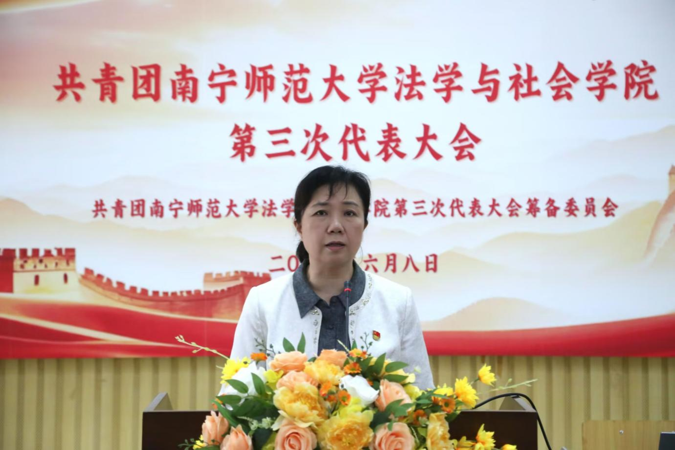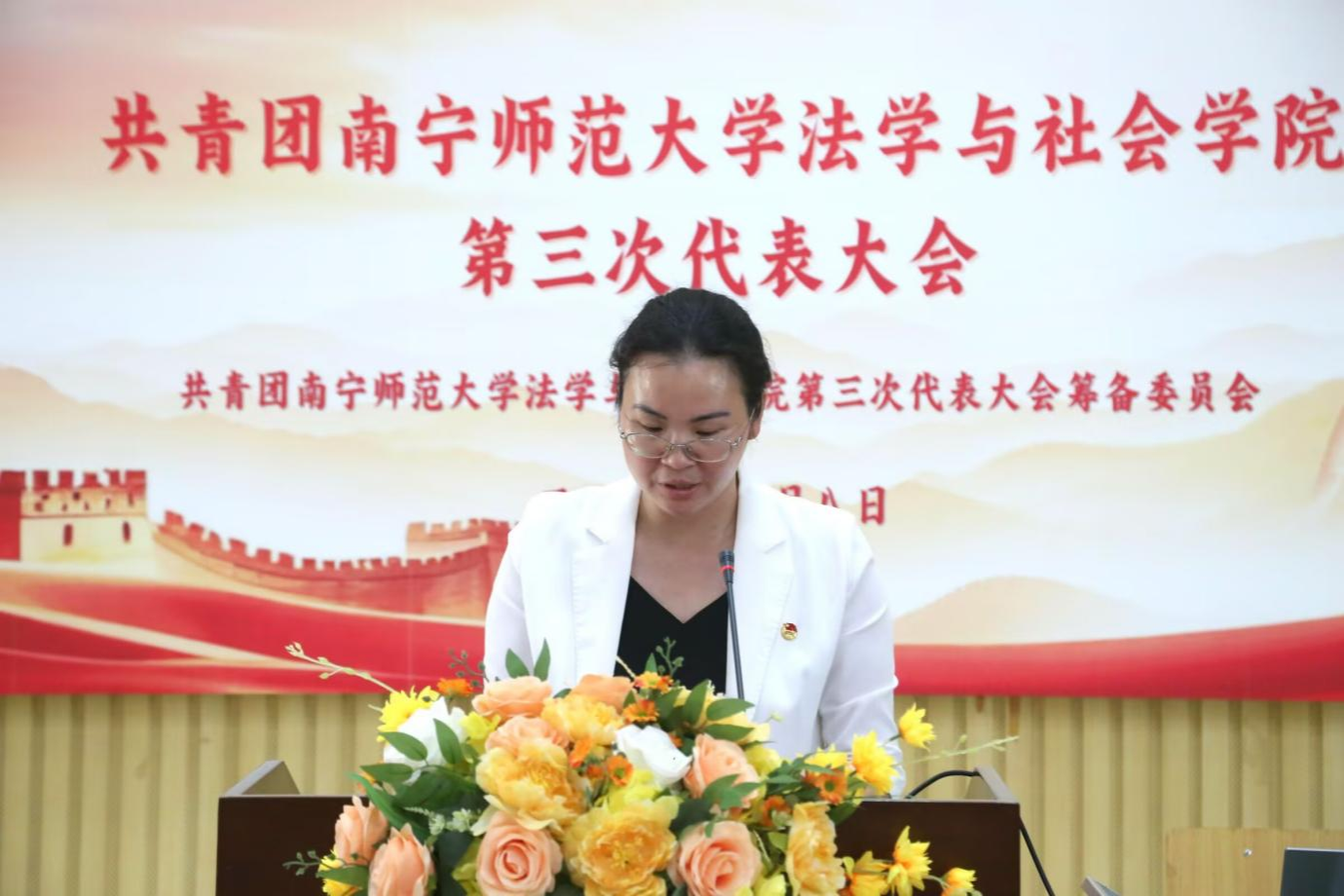 为贯彻落实《中国共产主义青年团章程》、《中国共产主义青年团基层组织选举规则》和《中国共产主义青年团普通高等学校基层组织工作条例》等有关规定,法学与社会学院团委于2025年6月8日上午在五合校区综合楼107教室举行共青团南宁师范大学法学与社会学院第三次代表大会。学校团委书记区丽媛老师、学院党委书记许建老师、学院党委副书记张建梅老师,学院团委书记农云霞老师和学院辅导员邓雅文老师出席了本次大会,参加本次大会的正式代表有195人。