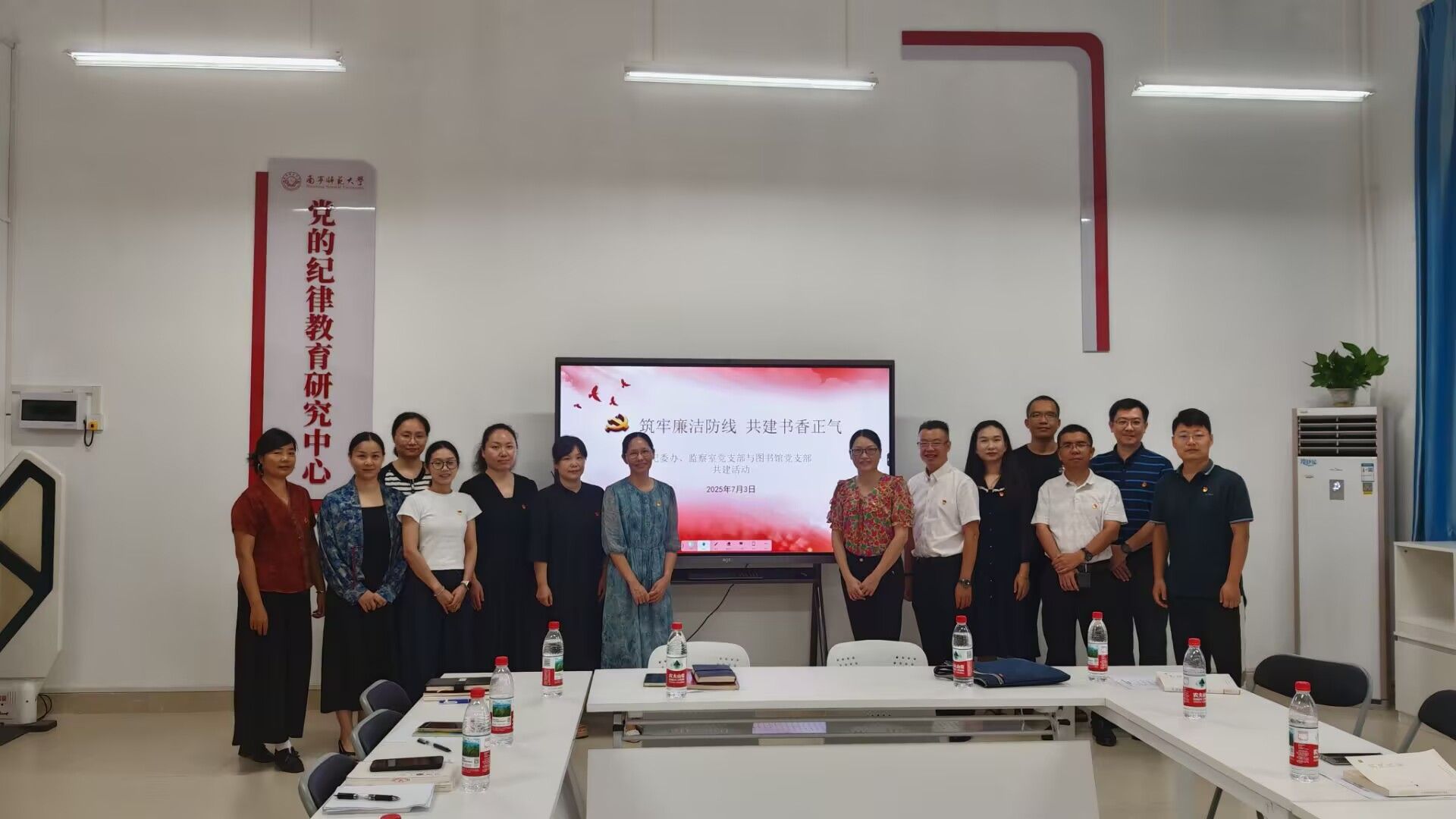 为扎实开展深入贯彻中央八项规定精神学习教育,营造崇廉尚洁的浓厚氛围,7月3日上午,图书馆党支部携手纪委办、监察室、巡察办党支部于五合校区理综楼“党的纪律教育研究中心”开展“筑牢廉洁防线 共建书香正气”主题党建共建活动。图书馆党支部支委、部分党员代表和纪委办、监察室、巡察办党支部全体党员参加了活动。